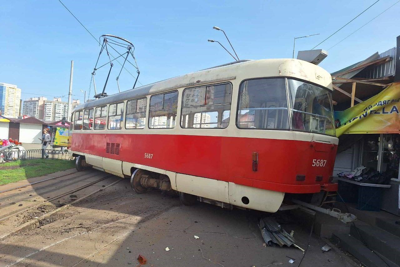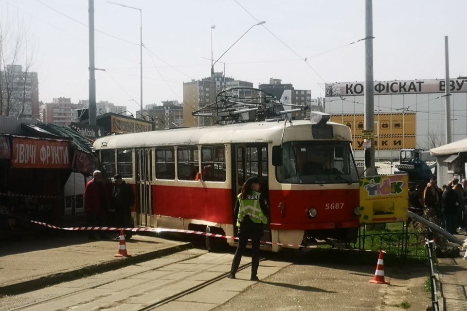 У Києві трамвай зійшов з рейок на кінцевій зупинці – станції метро «Позняки». Також транспорт зачепив кіоски місцевого ринку, які знаходилися близько до колій. Внаслідок інциденту госпіталізували одного постраждалого.