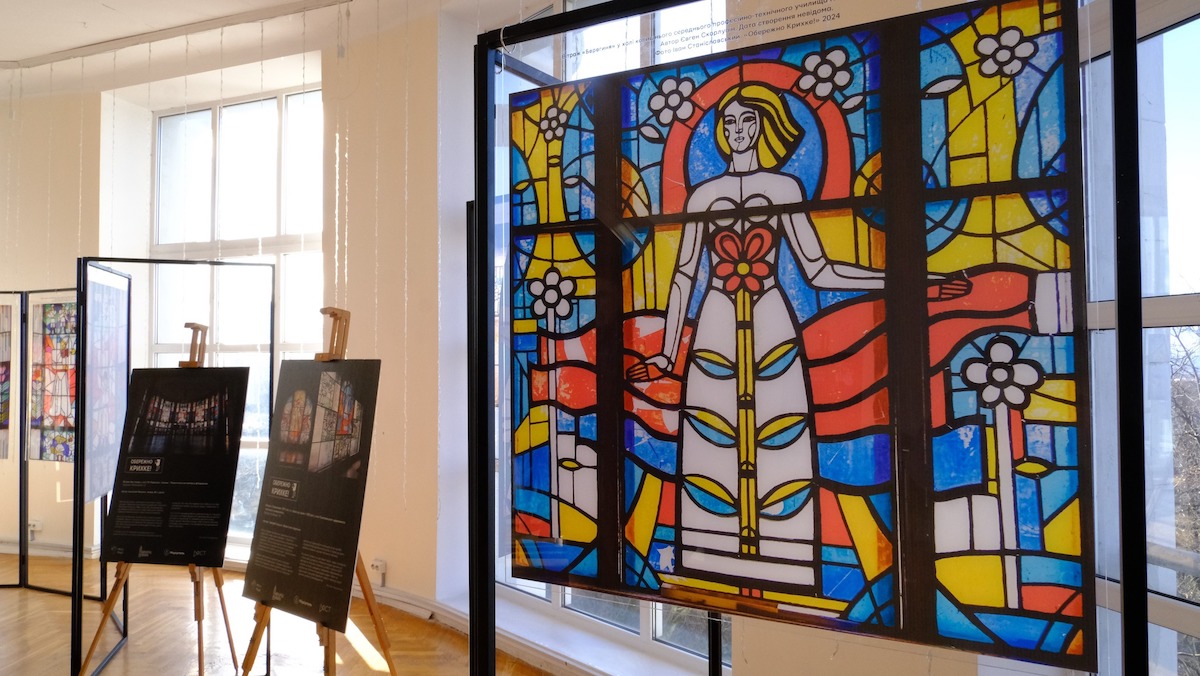 Експозицію розмістили в апсиді на третьому поверсі Музею історії України, де багато вікон, тож вітражі добре видно у сонячному світлі.