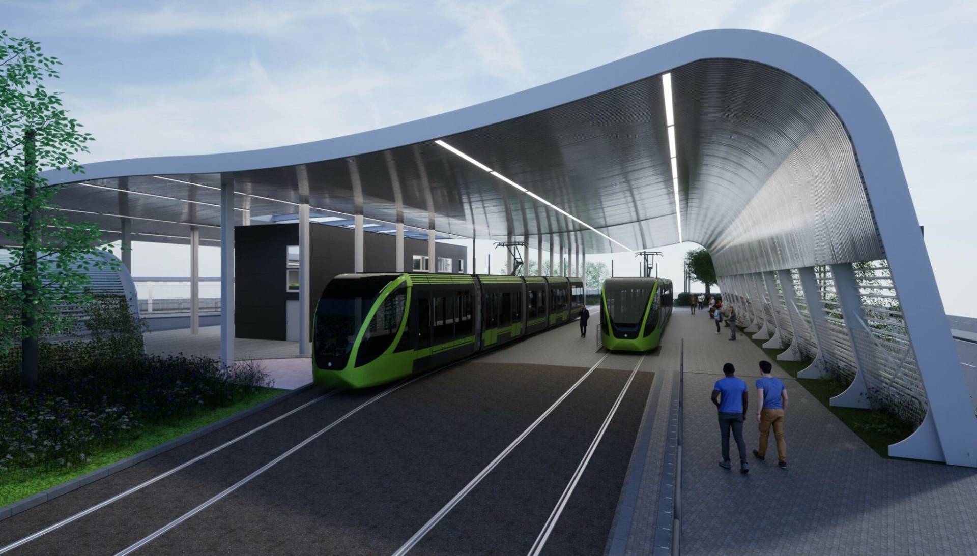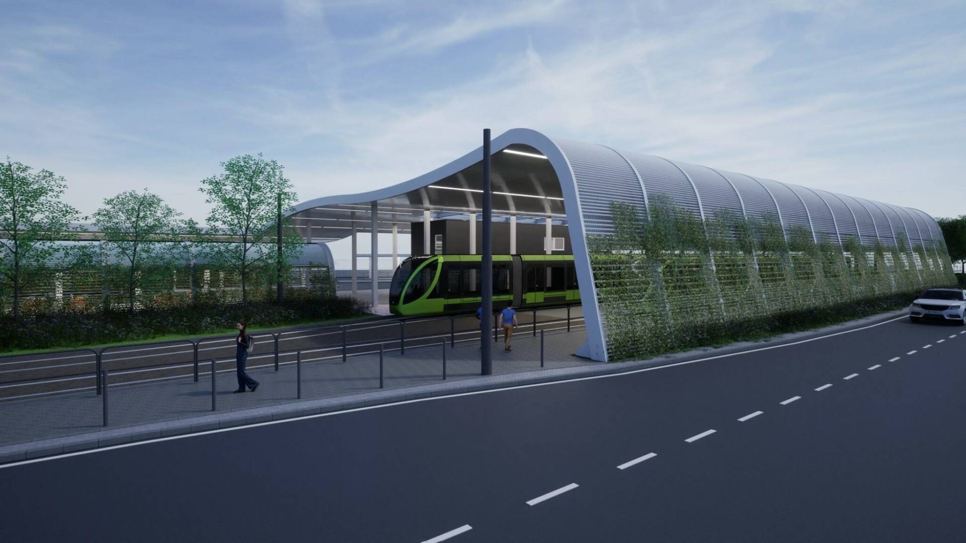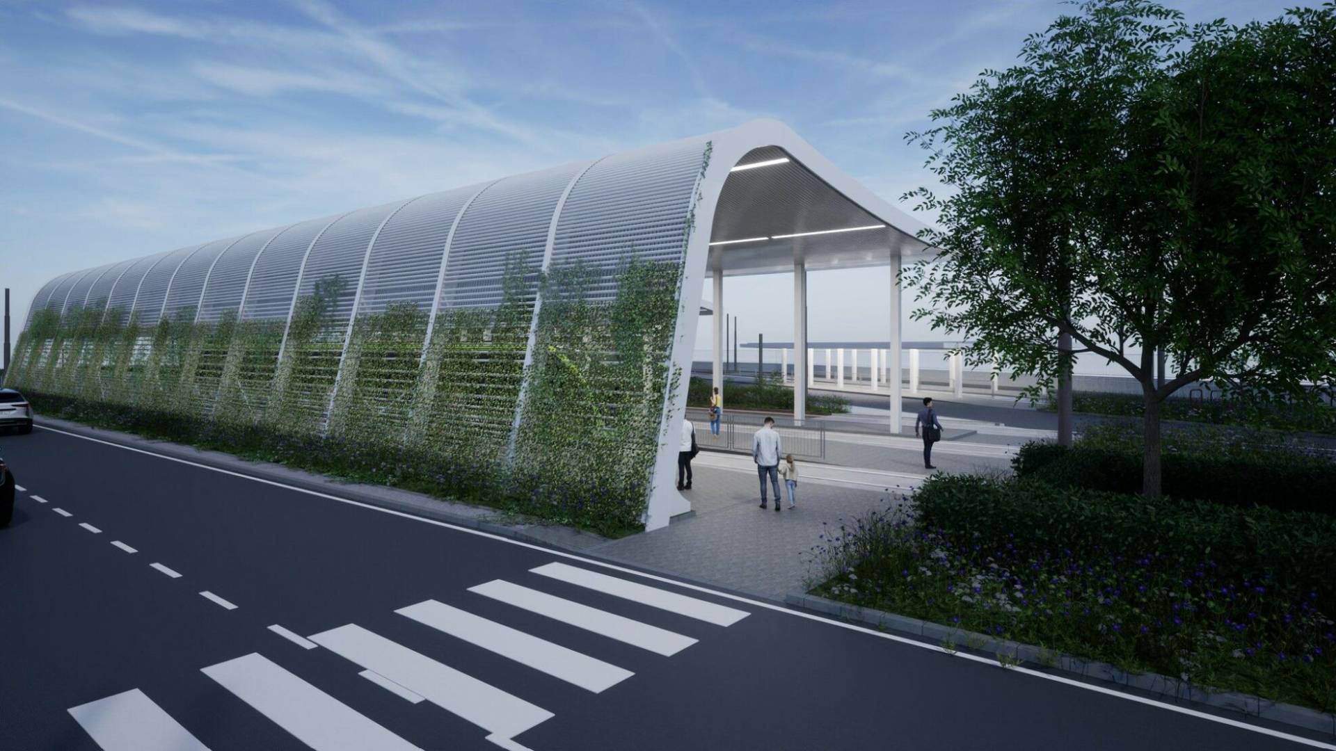 Комплекс поєднуватиме трамвайну та автобусну зупинки. Проте вертикальне озеленення передбачене лише у частині для трамваїв.