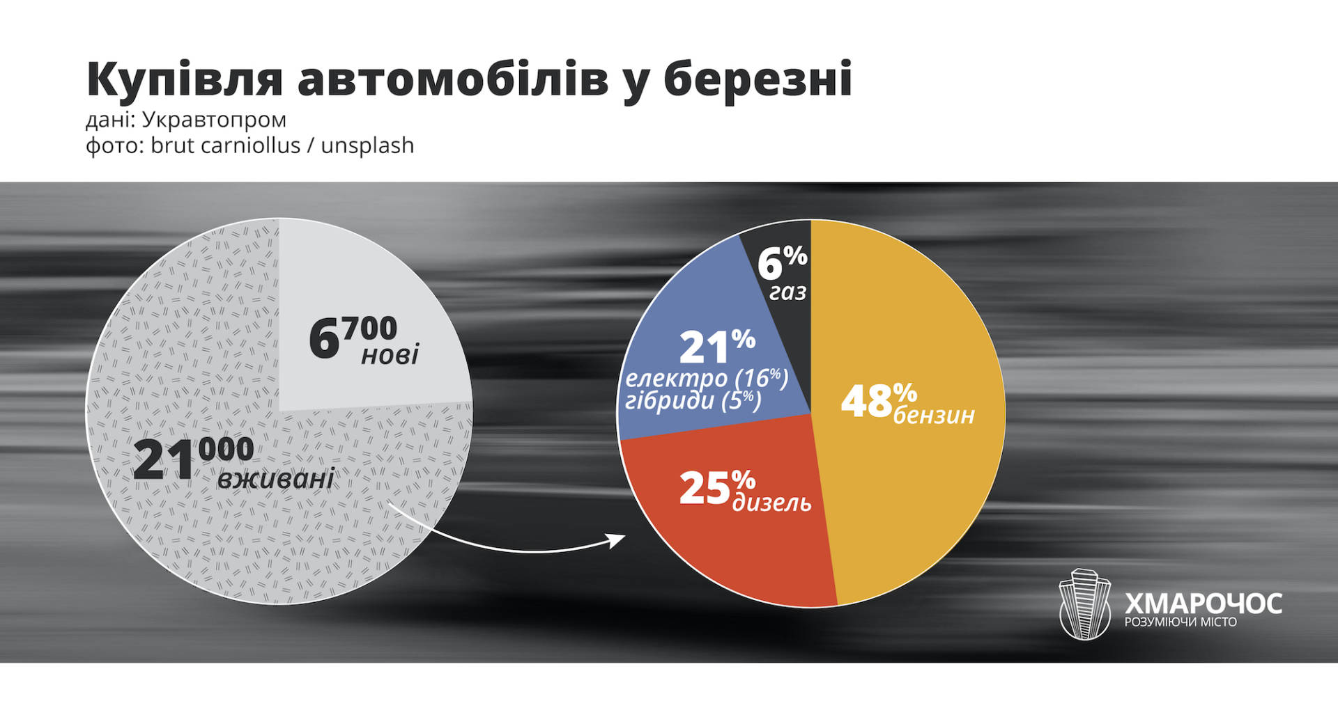 У березні українці купили майже 30 тисяч автівок. Кожна п’ята — електрокар чи гібрид (інфографіка)