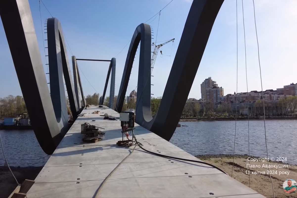 Міст-хвилю на Оболоні відкриють до кінця травня. Як він виглядає зараз?
