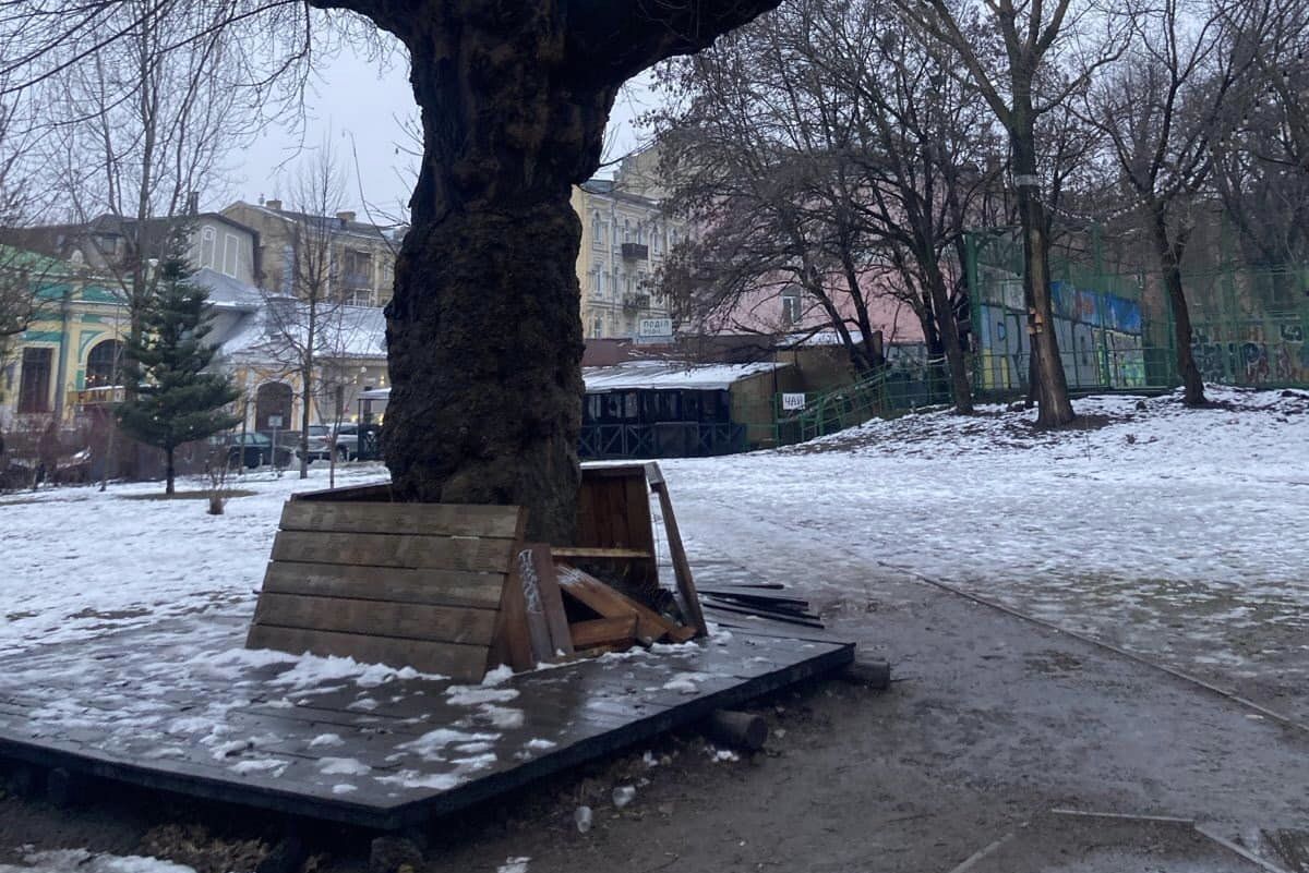 Тиждень тому повідомляли, що невідомі розбили частину лави навколо дерева.