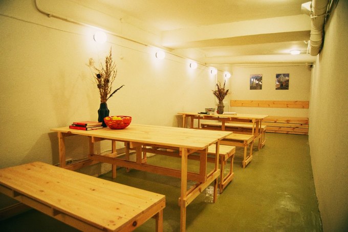 Раніше приміщення у підвалі радянського гуртожитку перебувало у напівзруйнованому стані. Спочатку студенти й активісти проводили роботи з демонтажу, а протягом наступних кількох місяців – виготовляли меблі, ремонтували стіни та облаштовували простір. Загалом над оновленням укриття працювали вісім місяців.