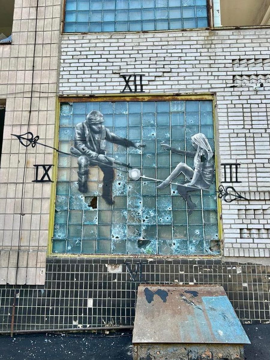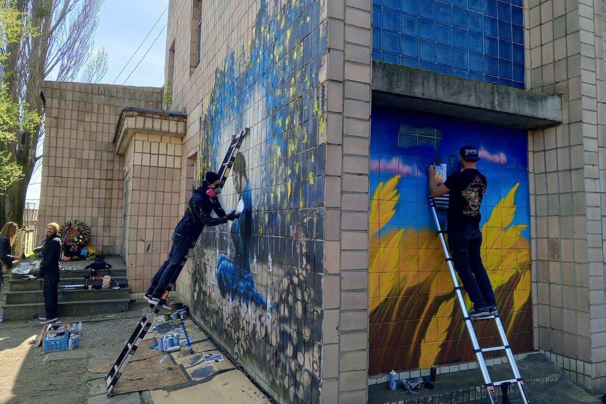 Восени минулого року Джонні Ешбоу та Трістан Джордж намалювали в Україні 14 муралів: в Ірпені, Бучі, Дмитрівці, Харкові та Ізюмі.
