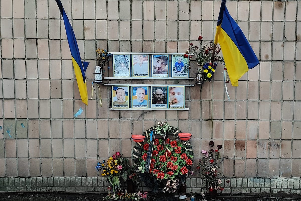До створення муралу на стіні, біля якої розстрілювали цивільних, був саморобний меморіал від родичів.