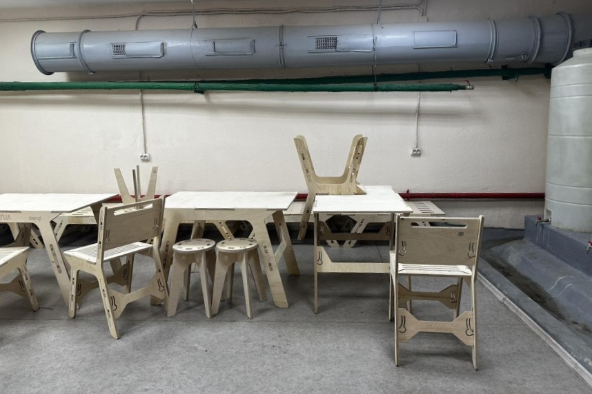 У Дніпровському районі Києва облаштували нове бомбосховище за адресою вулиця Ірини Бекешкіної, 16/2. Його обладнали модульними меблями, виготовленими з березової фанери.
