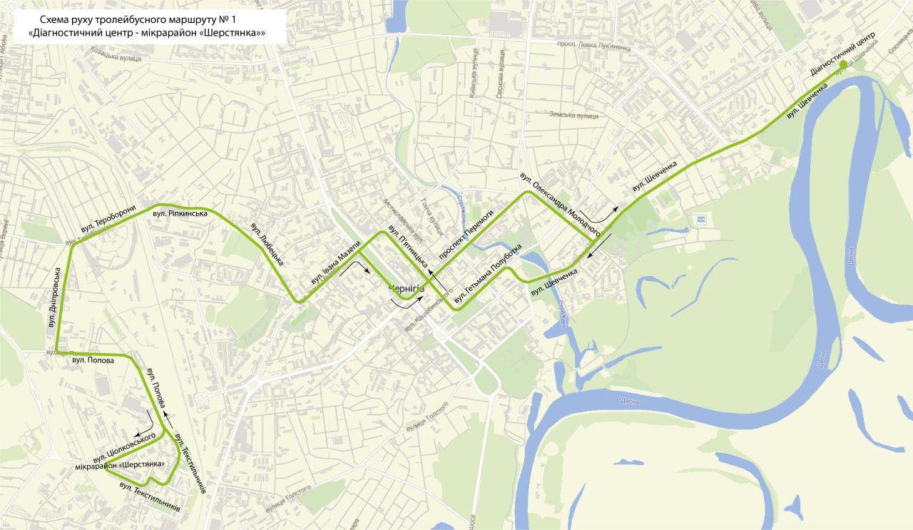 Маршрут №1 «Діагностичний центр — мікрорайон Шерстянка» минатиме Подусівку та доїжджатиме до Бобровиці.