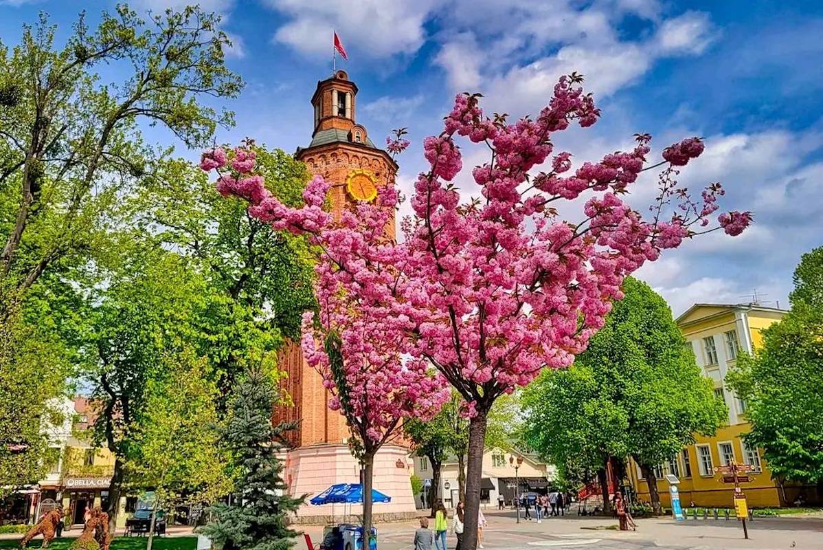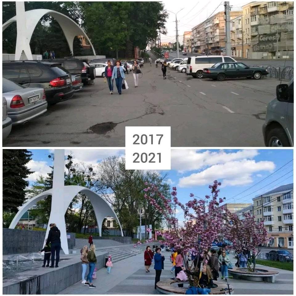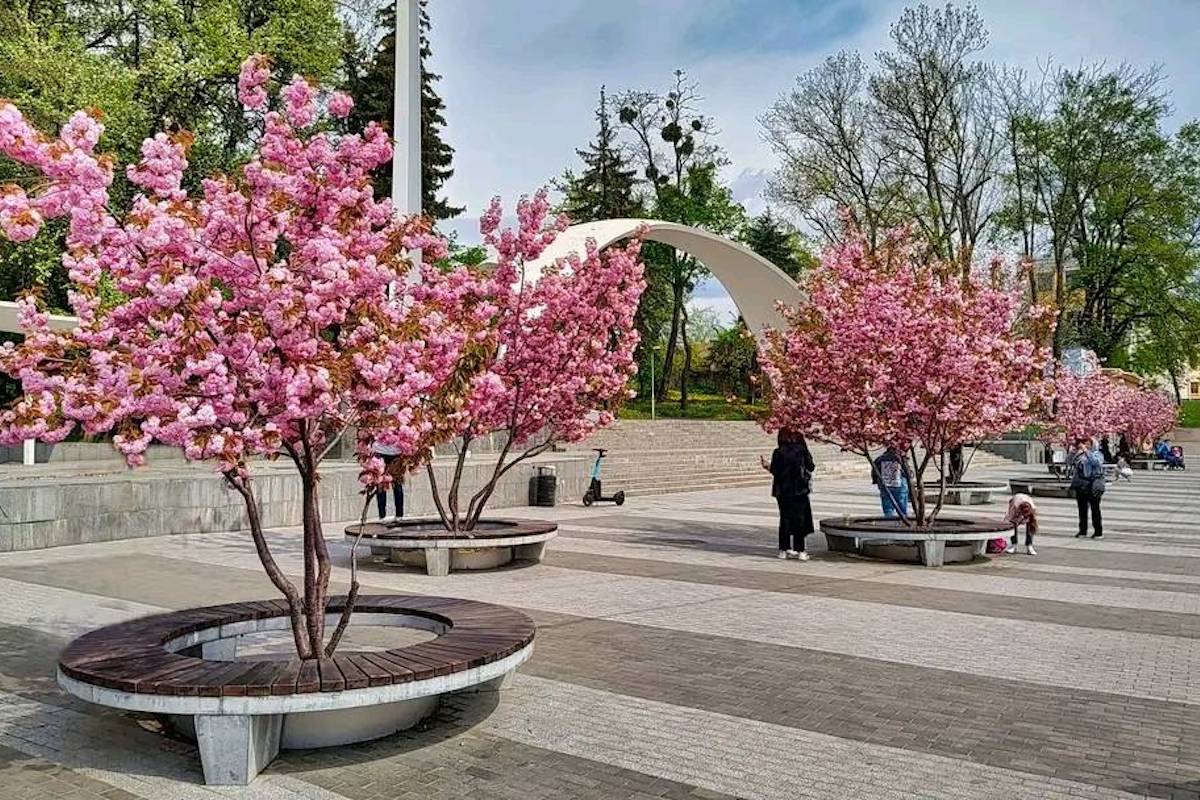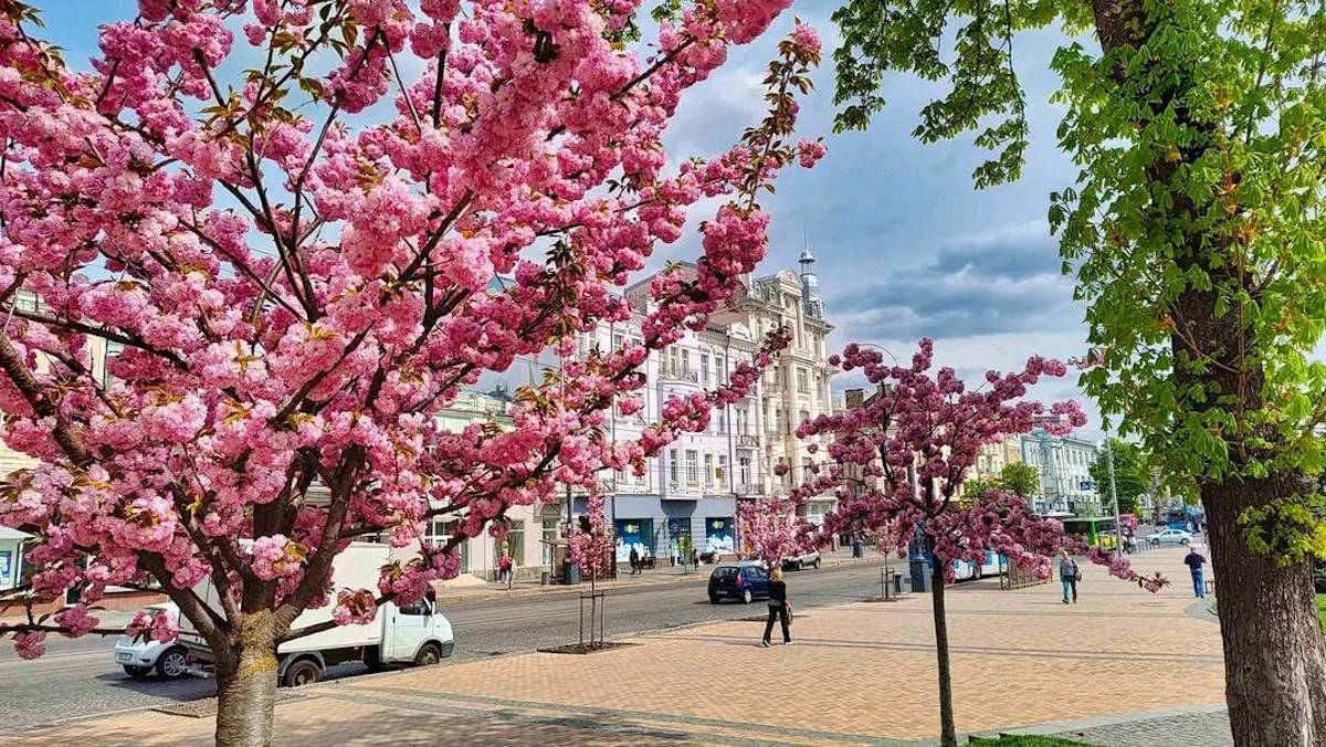 У Вінниці на площі, раніше заставленій автівками, розквітли сакури (фото)