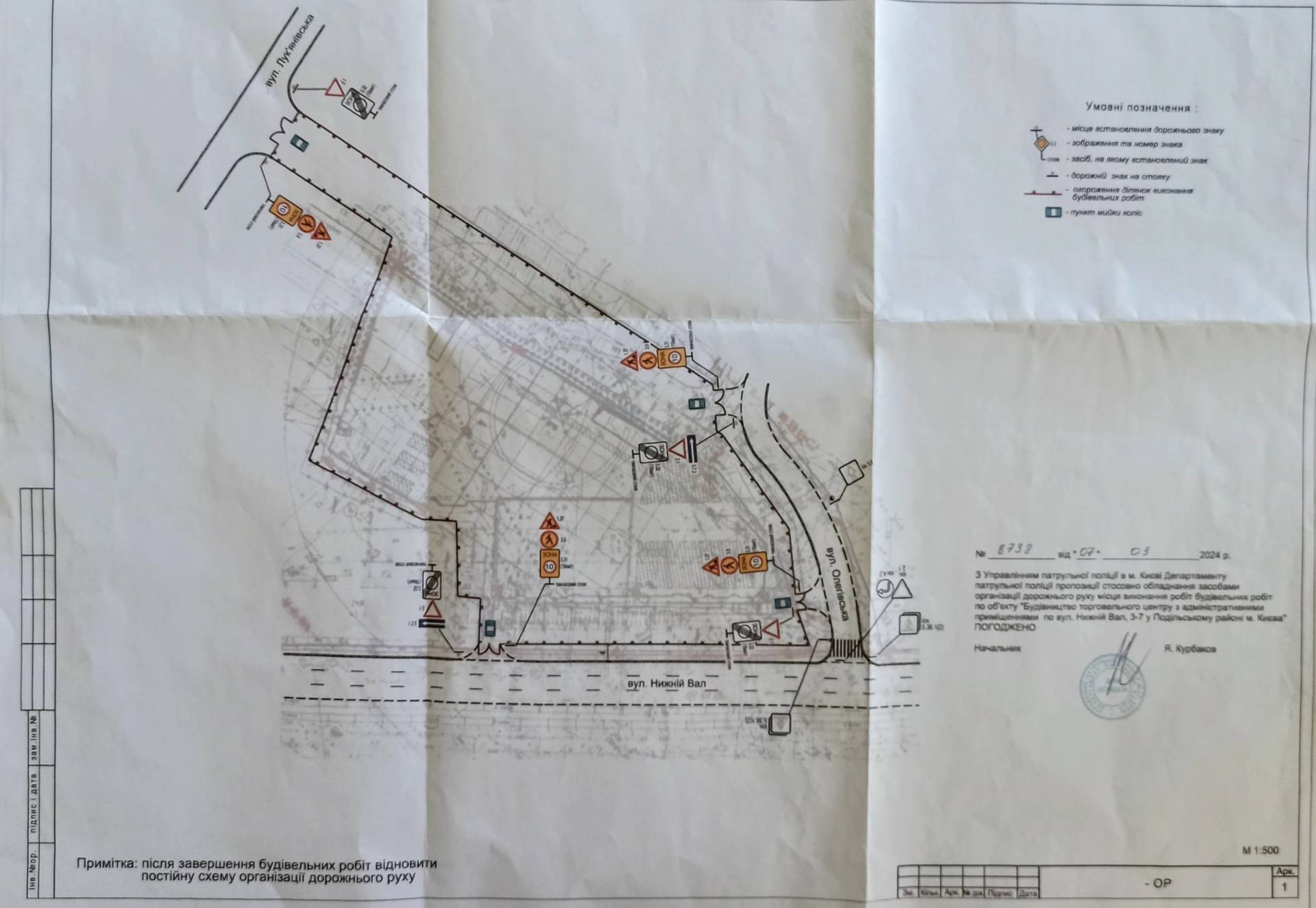 Перекриття вулиці погодили з патрульною поліцією. Водночас після завершення будівництва забудовник мусить відновити рух вулицею. Зокрема, видані Київавтодором технічні умови передбачають відновлення покриття проїзної частини та тротуарів.