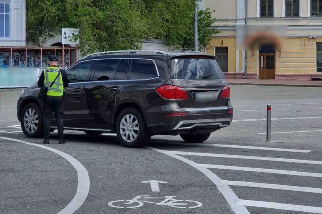 Проте на нових велодоріжках вже були помічені незаконно припарковані автомобілі. Патрульна поліція Києва опублікувала фото з Контрактової площі, на якому притягує до відповідальності водія залишеної на велосипедній смузі автівки.