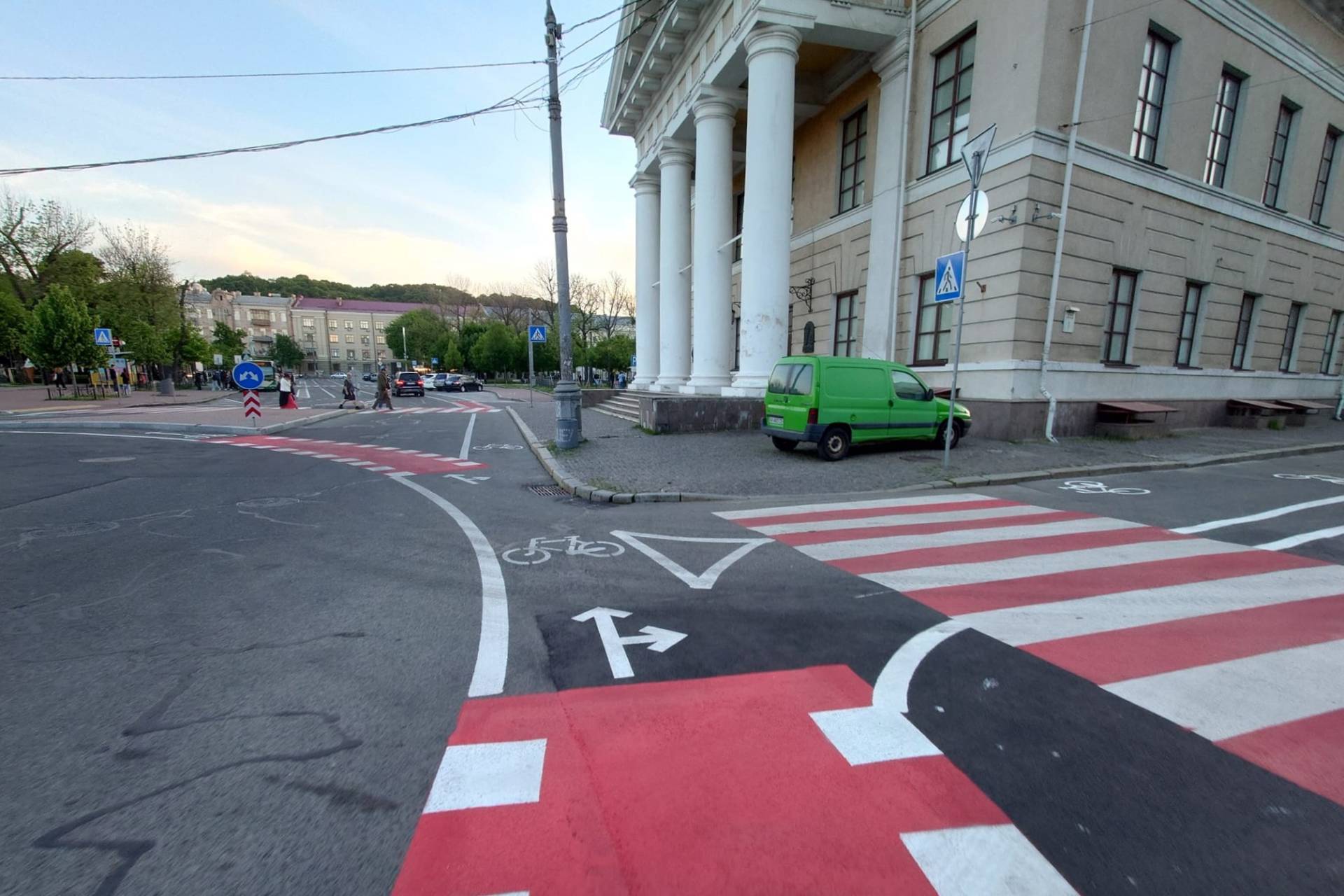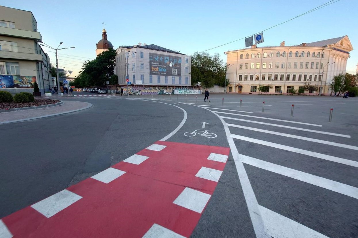 На Подолі у Києві змінили організацію дорожнього руху та облаштували велосипедні смуги. Нову схему ОДР реалізували на перехресті вулиць Межигірська і Григорія Сковороди та Контрактової площі.