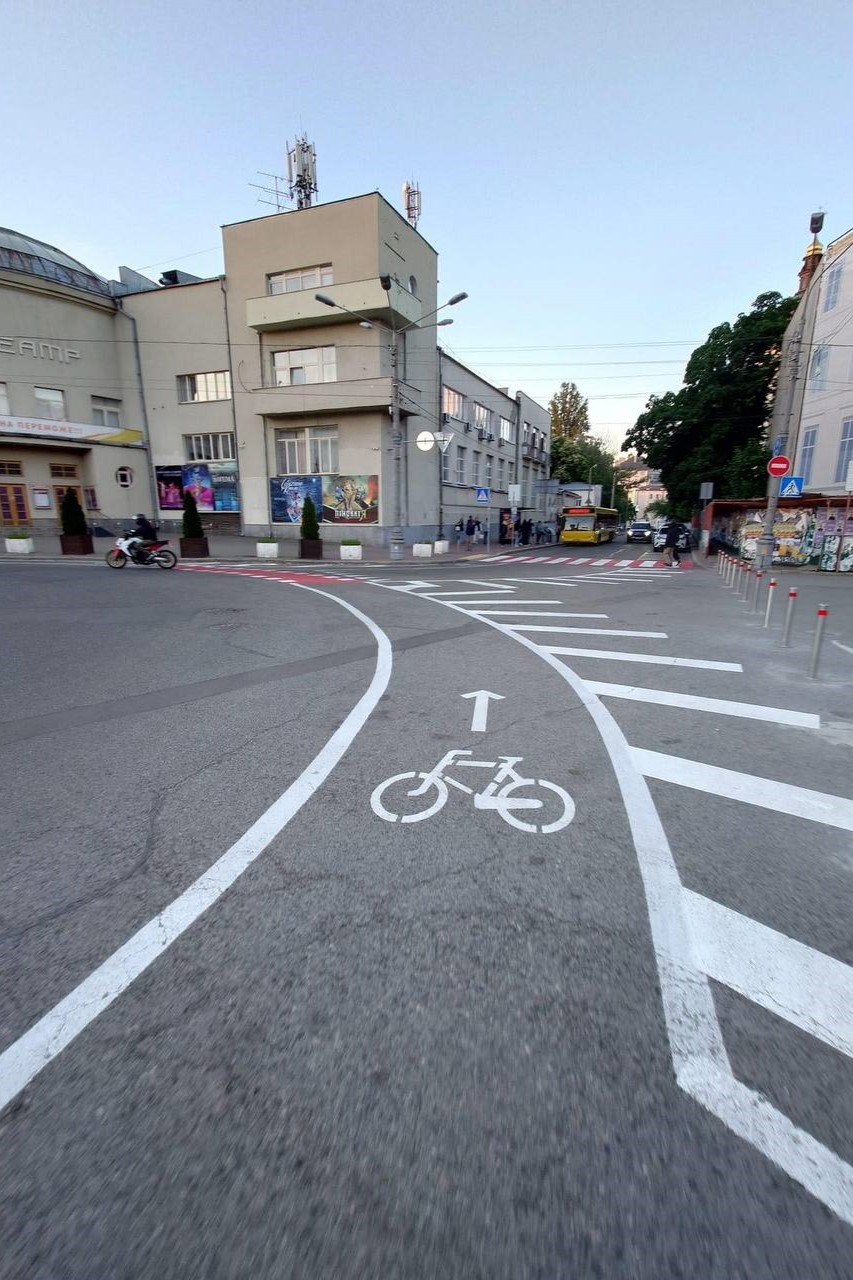 Нова велосипедна мережа поєднується з наявною велосмугою на вулиці Григорія Сковороди, двосторонньою велодоріжкою на вулиці Спаській і велопішохідною зоною на Контрактовій площі.