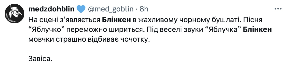 «Я знаю, що це справді дуже складний час. Ваші солдати, ваші цивільні у північнічно-східних регіонах і в Харкові жахливо страждають. Але ви маєте знати: Сполучені Штати з вами, так само, як і весь світ», — заявив Блінкен.