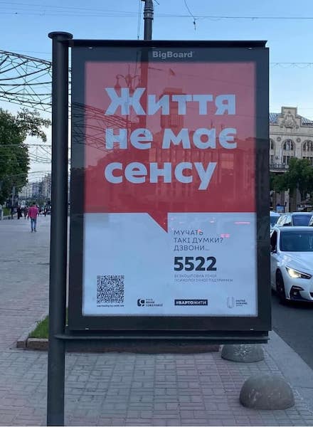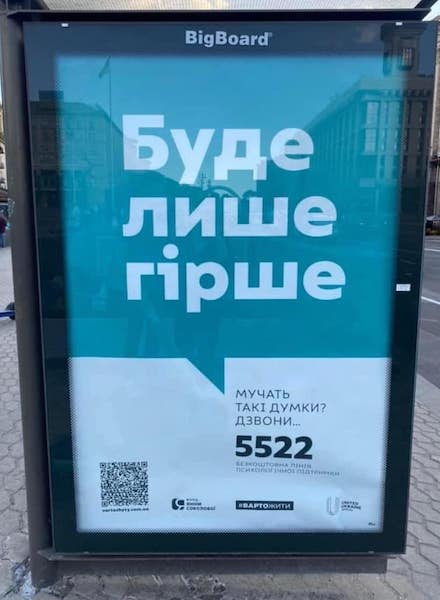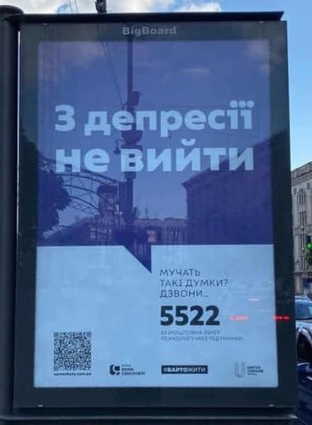 На плакатах містилися великі написи «Буде лише гірше», «З депресії не вийти» та «Життя не має сенсу». Нижче дрібним шрифтом пропонувалося подзвонити на гарячу лінію, якщо турбують такі думки.