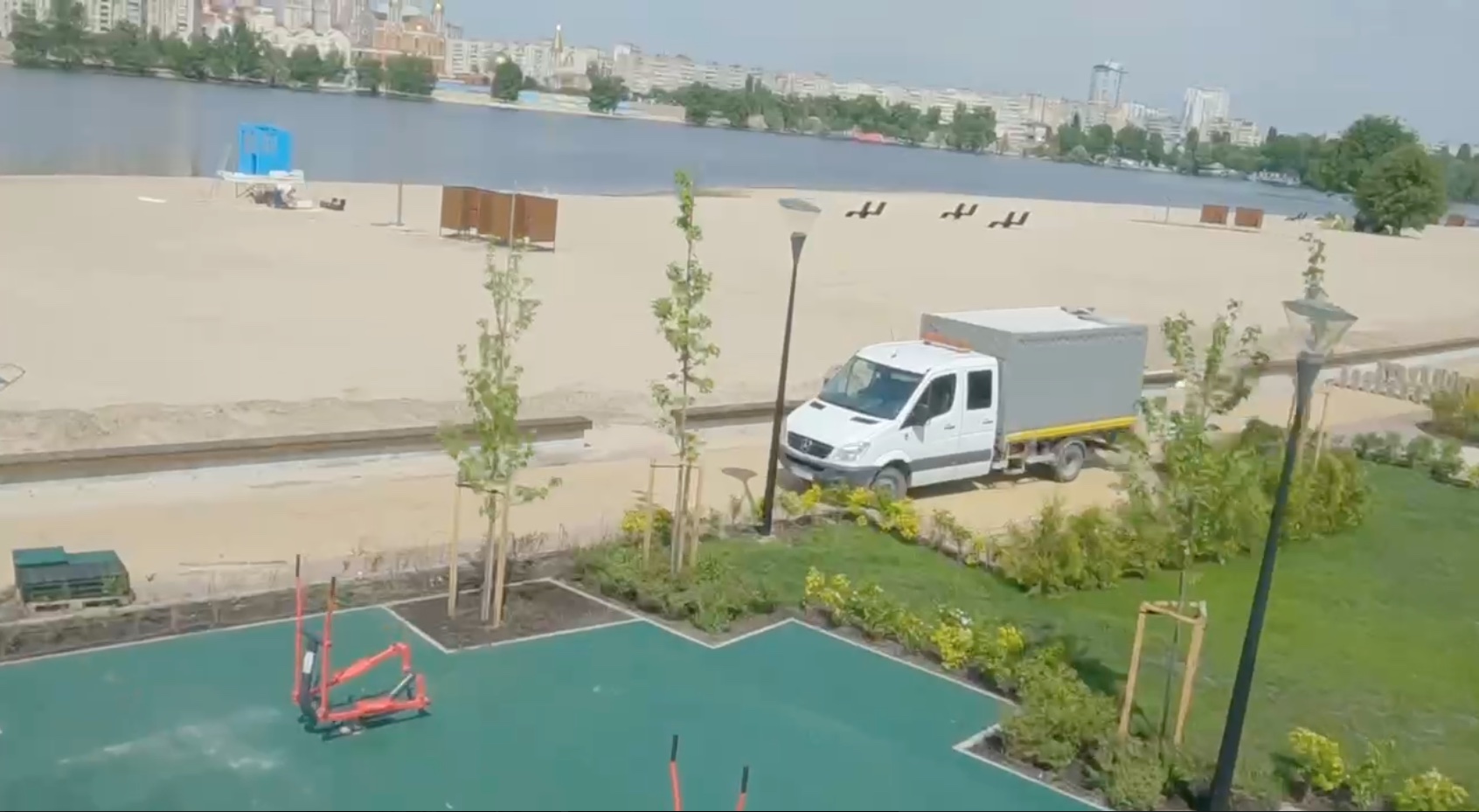 Разом із мостом облаштували пляж і спортивні майданчики на Оболонському острові.