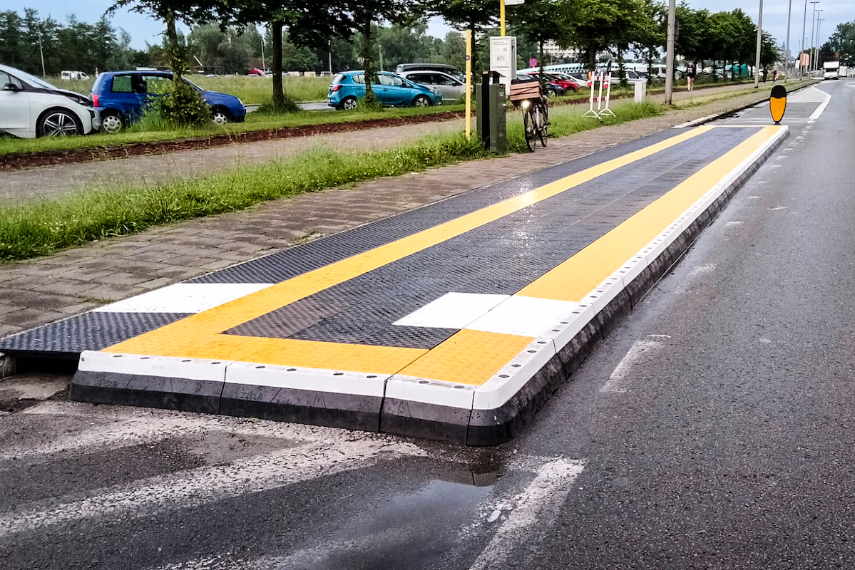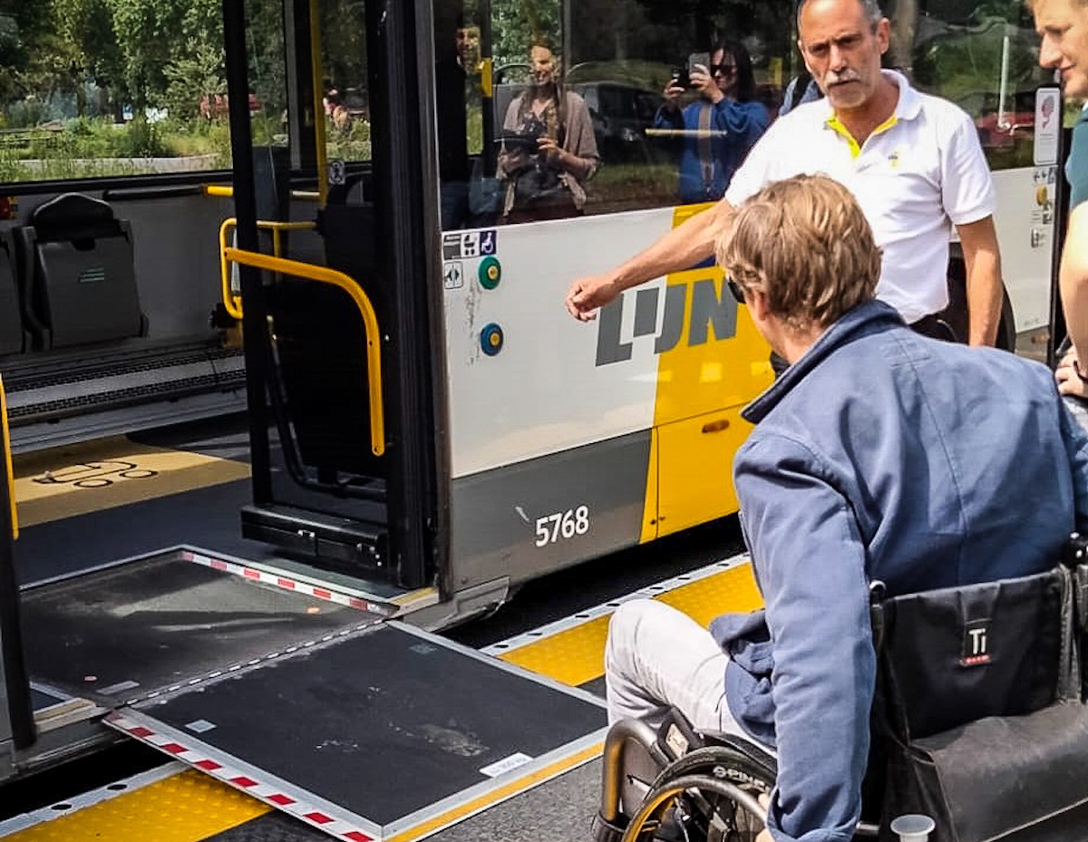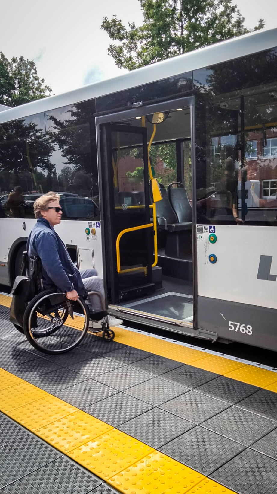 Це платформа з тактильною плиткою, яка забезпечує легкий доступ до салону автобуса, що особливо помічно для людей із інвалідністю та інших маломобільних містян.