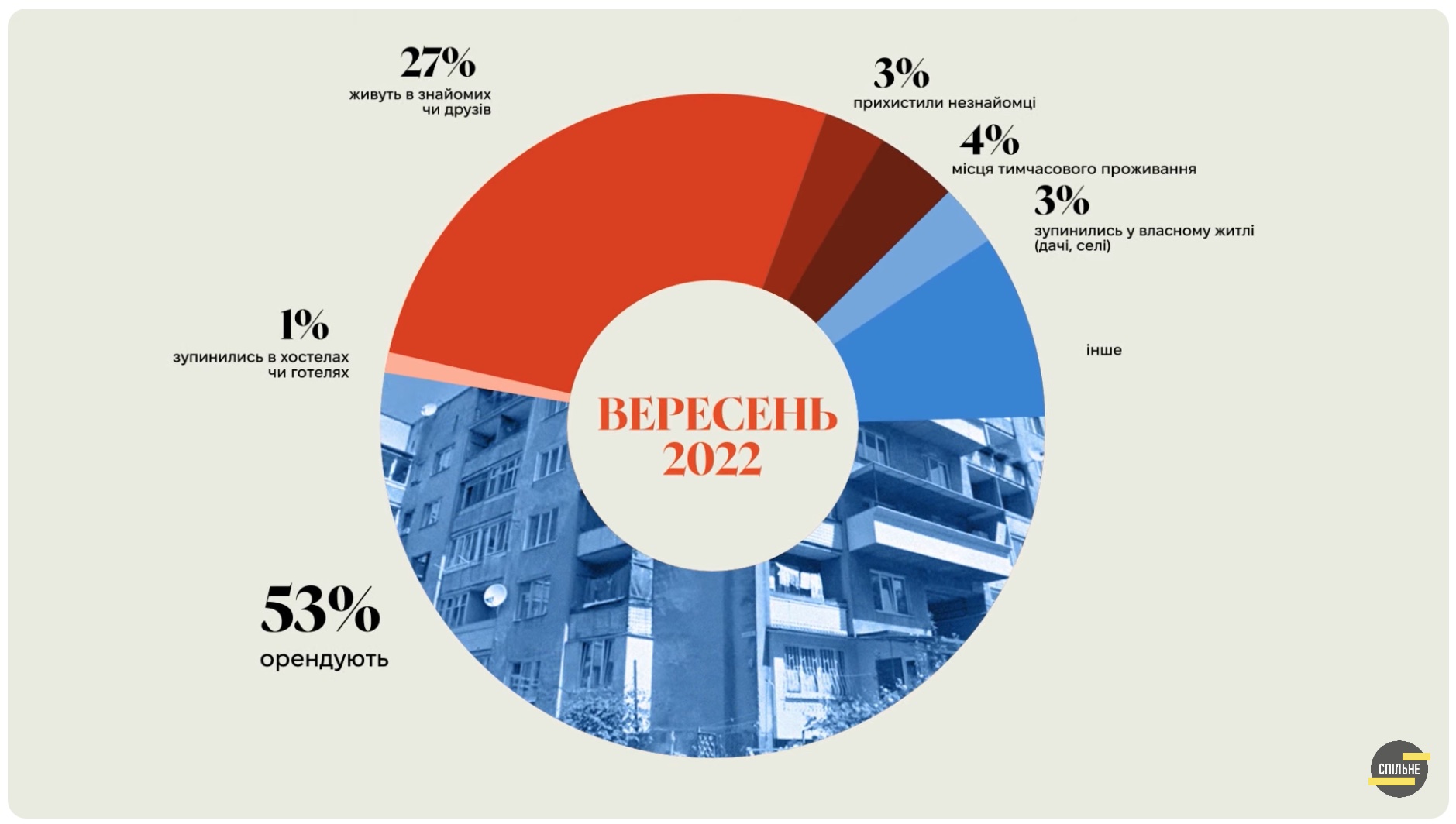 Наведені нижче графіки показують, що переселенці дедалі більше переселенців орендують житло: лише за пів року частка тих, хто орендує, зросла з 7% до 53%.