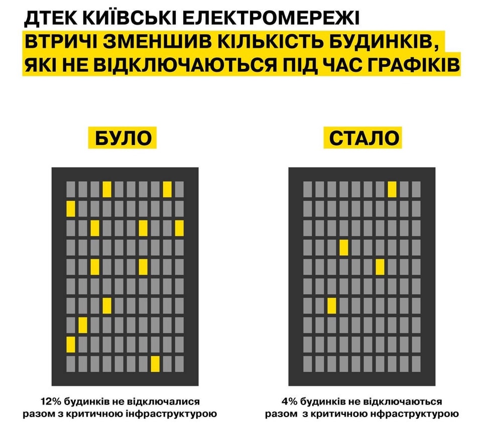 Кількість столичних багатоповерхівок, які не відключають від мережі під час дії графіків, зменшилась втричі, повідомляє ДТЕК Київські електромережі.