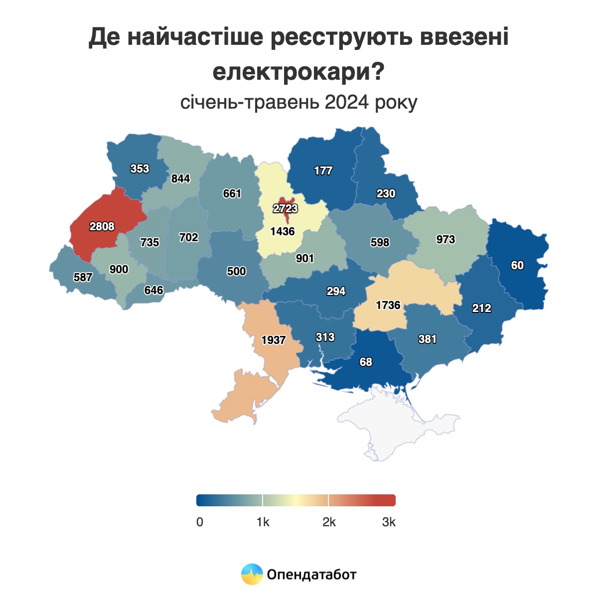 Найбільше електрокарів реєструють на Львівщині та у Києві.