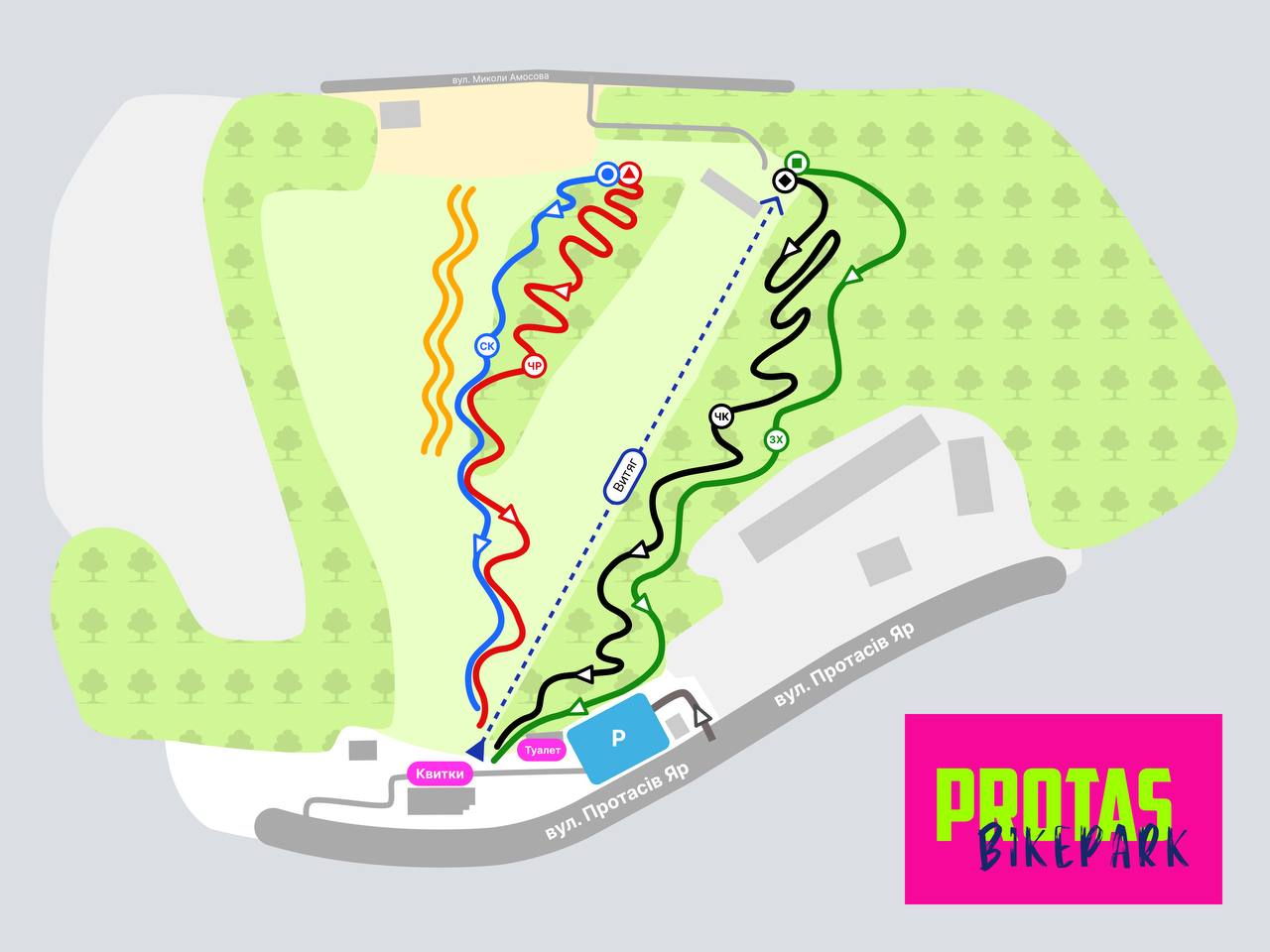 У Протасовому Яру відкрили Bikepark Protas. Наразі у велопарку облаштували чотири траси різних рівнів: