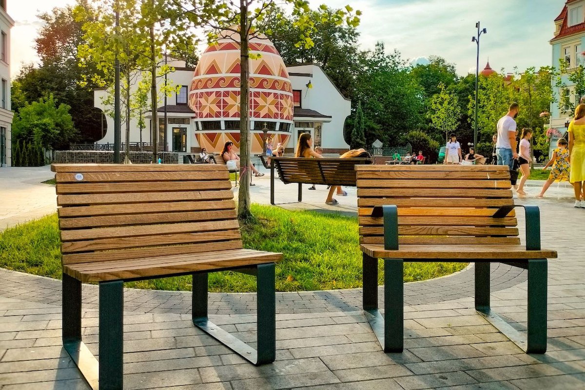 Встановили лави двох форматів: довгі триметрові та невеликі метрові, з яких можна гнучко формувати зони для кількох людей.