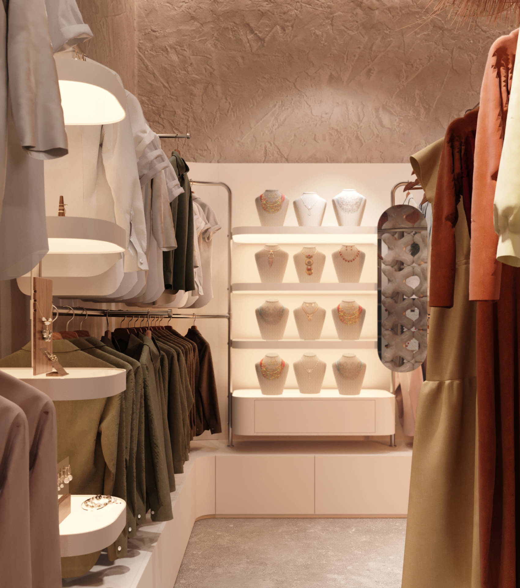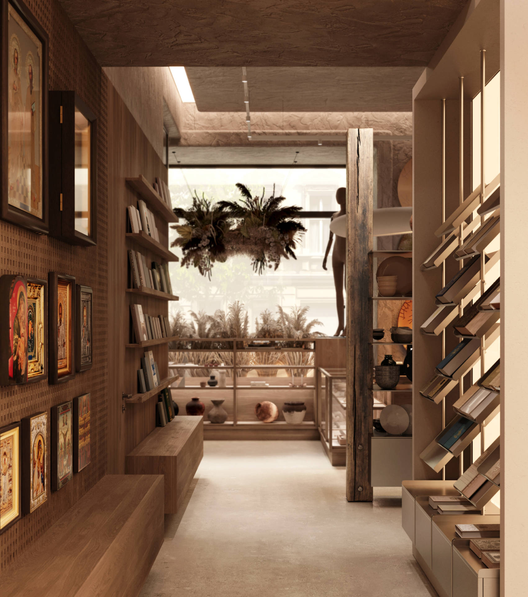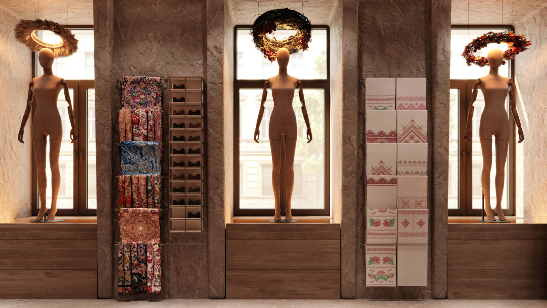 «Ми вирішили, що простір, де виставлені мистецькі вироби, сам має стати певною мірою артоб’єктом. При тому не забирати на себе увагу, а радше формувати правильний контекст і настрій. Це простір про сучасну прогресивну українську ідентичність, яка проростає з глибокої традиції», — зазначає команда проєкту.