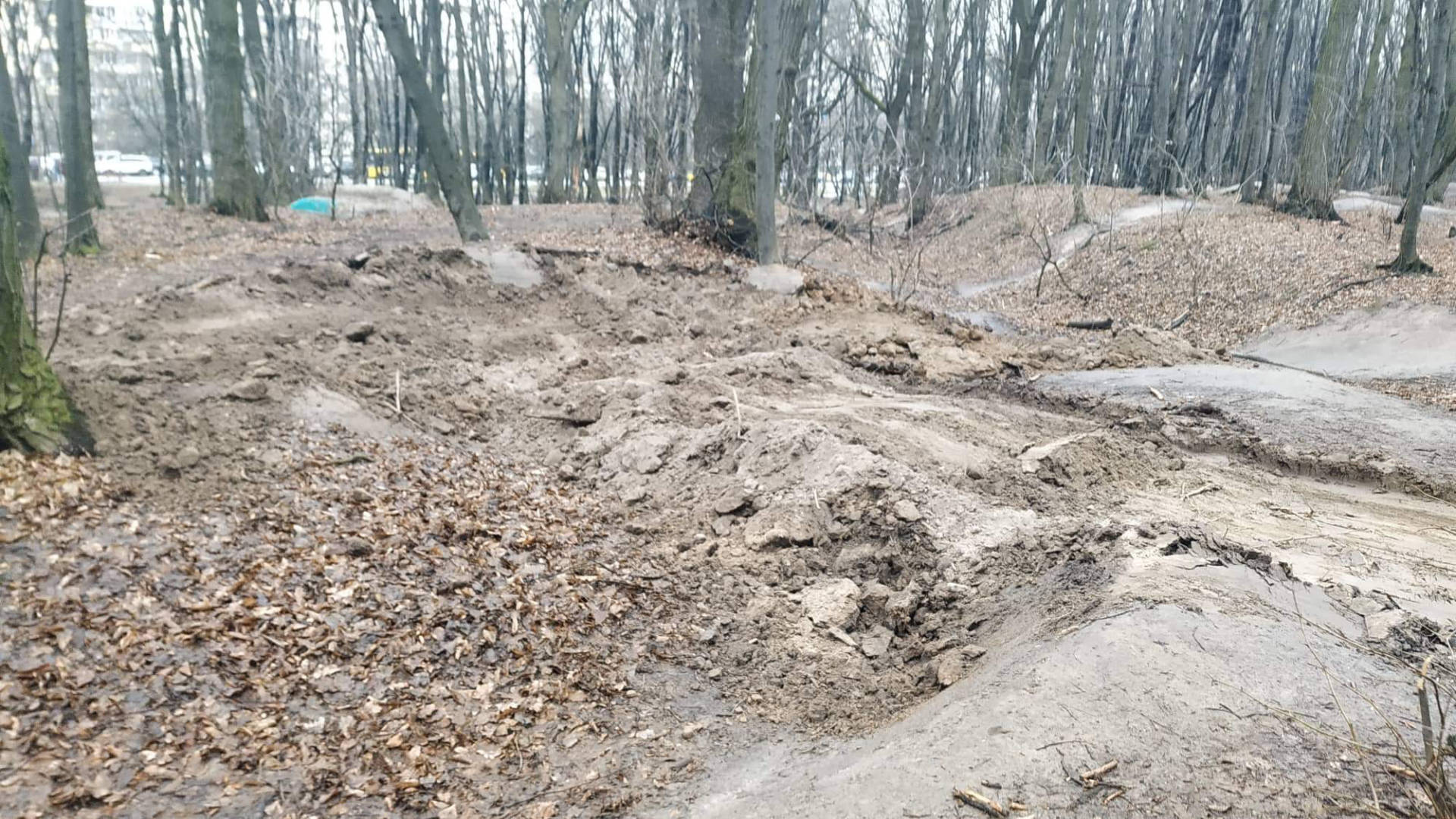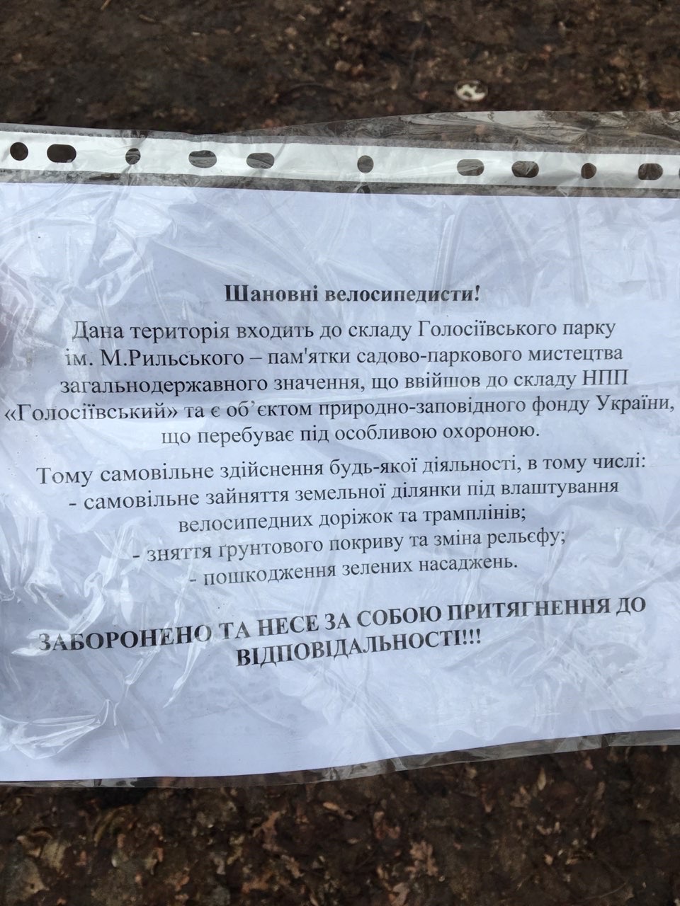 Раніше комунальники вже намагалися зруйнувати веломайданчик, посилаючись на те, що Голосіївський парк — частина заповідного фонду та має охоронний статус, тож зняття ґрунтового покриву та зміна рельєфу заборонена.