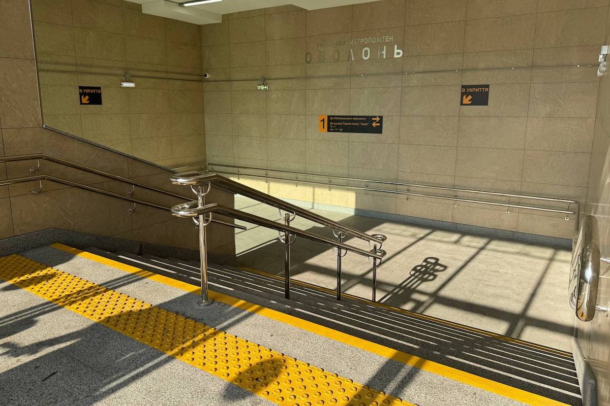 Вихід із метро «Оболонь», який з’єднує станцію та ЖК Obolon Plaza, лише частково є безбар’єрним, зазначає телеграм-канал про транспорт maxtram.
