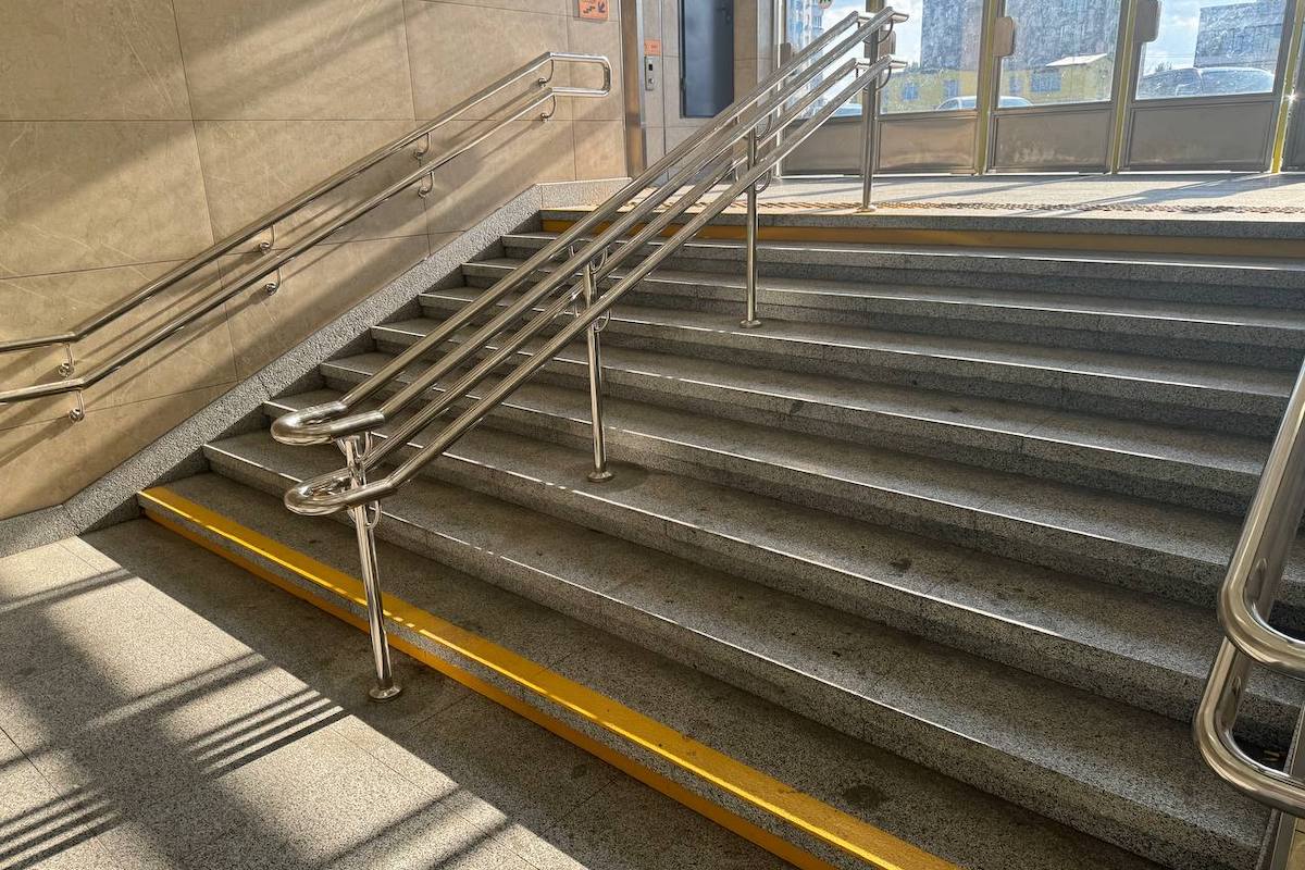 Оновлені сходи мають шорстку поверхню, контрастне маркування, а також додаткові поручні на висоті 70 та 90 сантиметрів.
