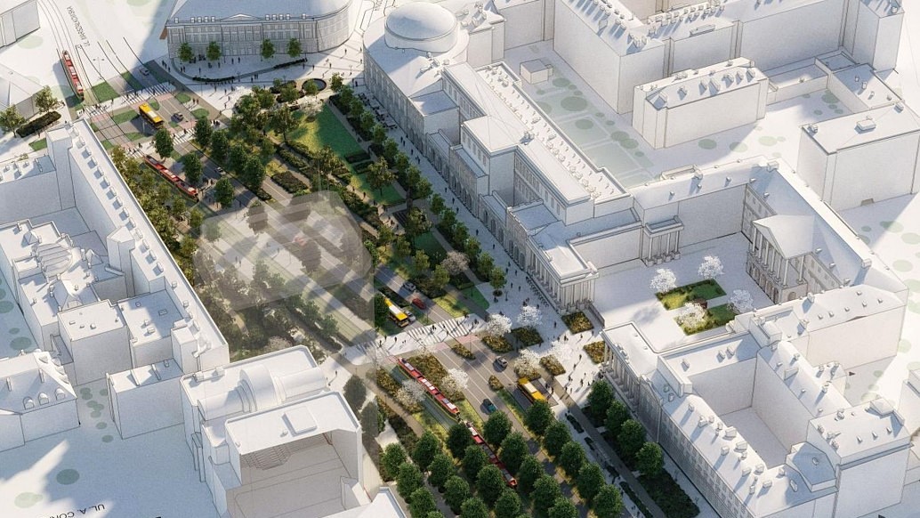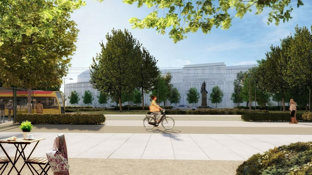 Площу в центрі Варшави почали озеленювати та роботи комфортною для пішоходів, а не машин