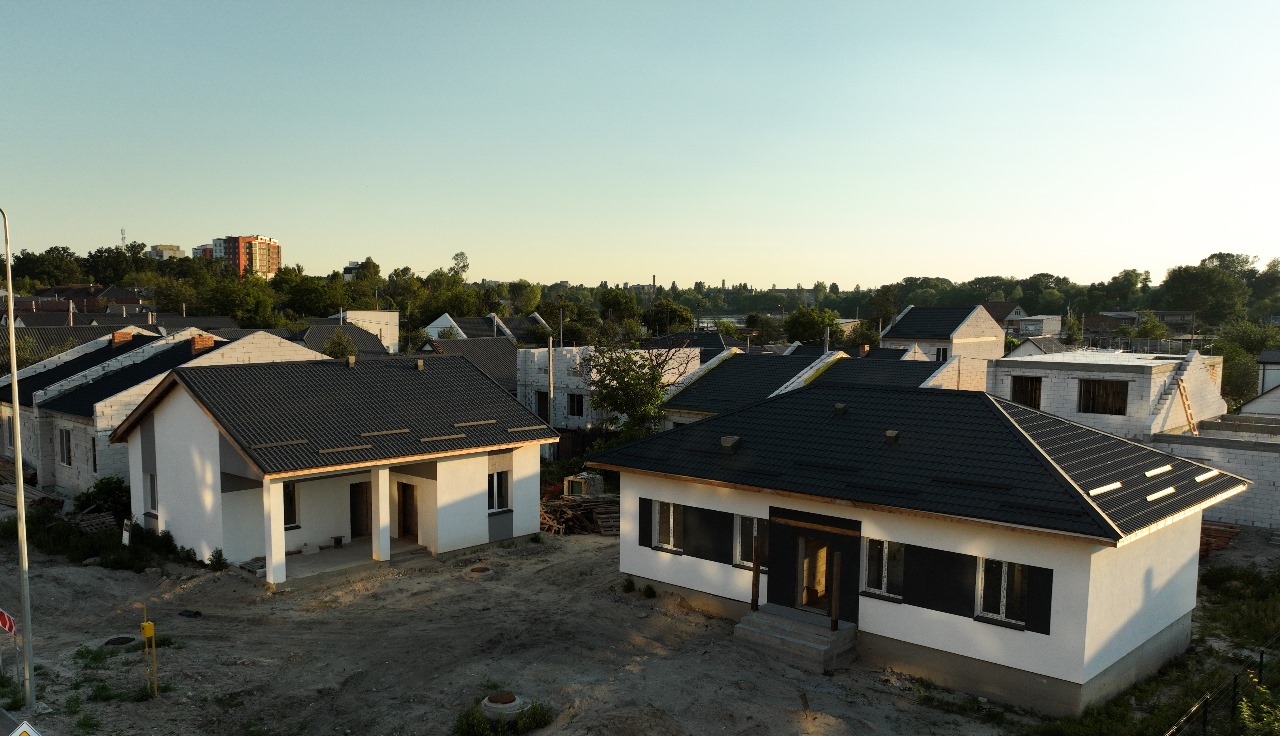 Наразі виконано 67% робіт. Зокрема, майже в усіх будинках зробили фундамент і стіни. А покрівлю, віконні та дверні блоки обладнали у понад половині осель. Також у більшості будівель уже облаштували внутрішні інженерні мережі.