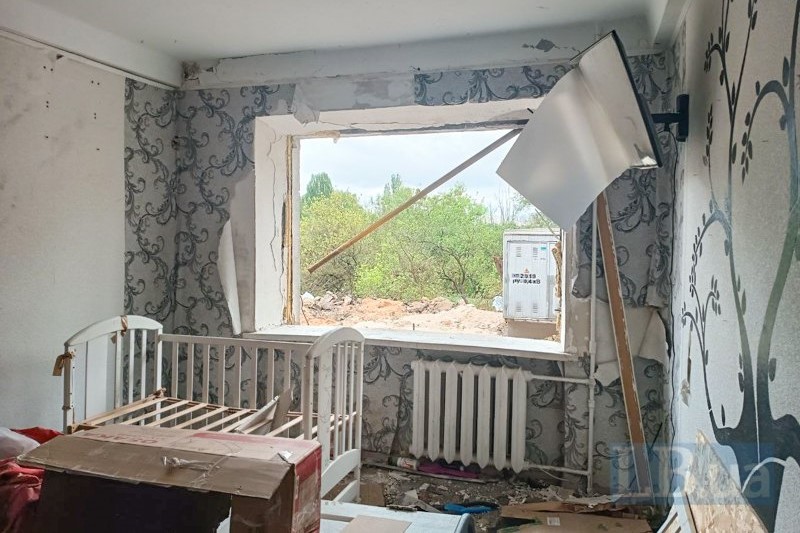 Зруйнований внаслідок ракетної атаки будинок на Сирці. Фото: Борис Корпусенко / «Вечірній Київ»