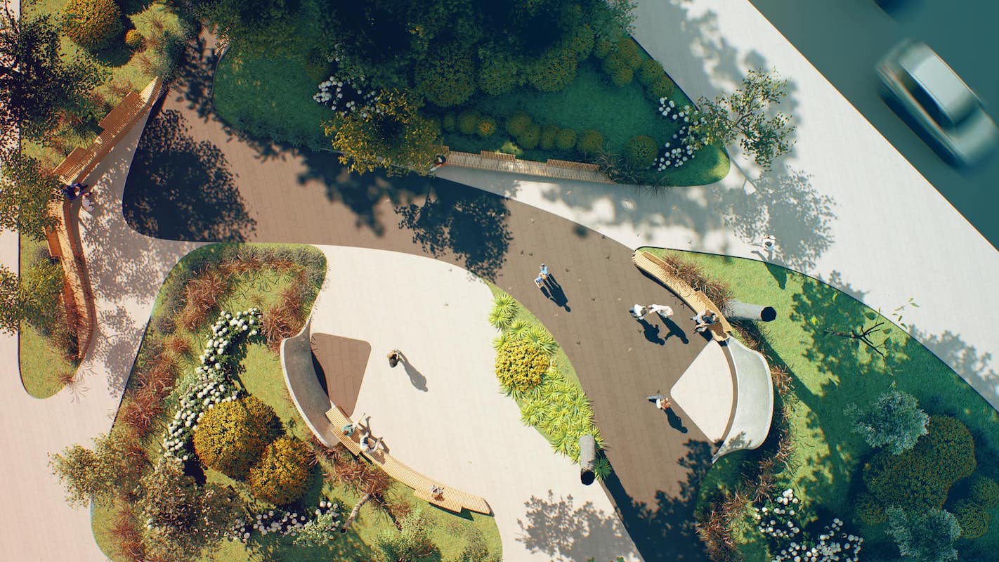 Раніше простір було організовано навколо памʼятника Космодем’янській, до нього були розвернуто лави. У новій концепції місця відпочинку запропонували максимально заглибити й відокремити від пішохідних доріжок, щоби зробити спілкування відвідувачів більш приватним.