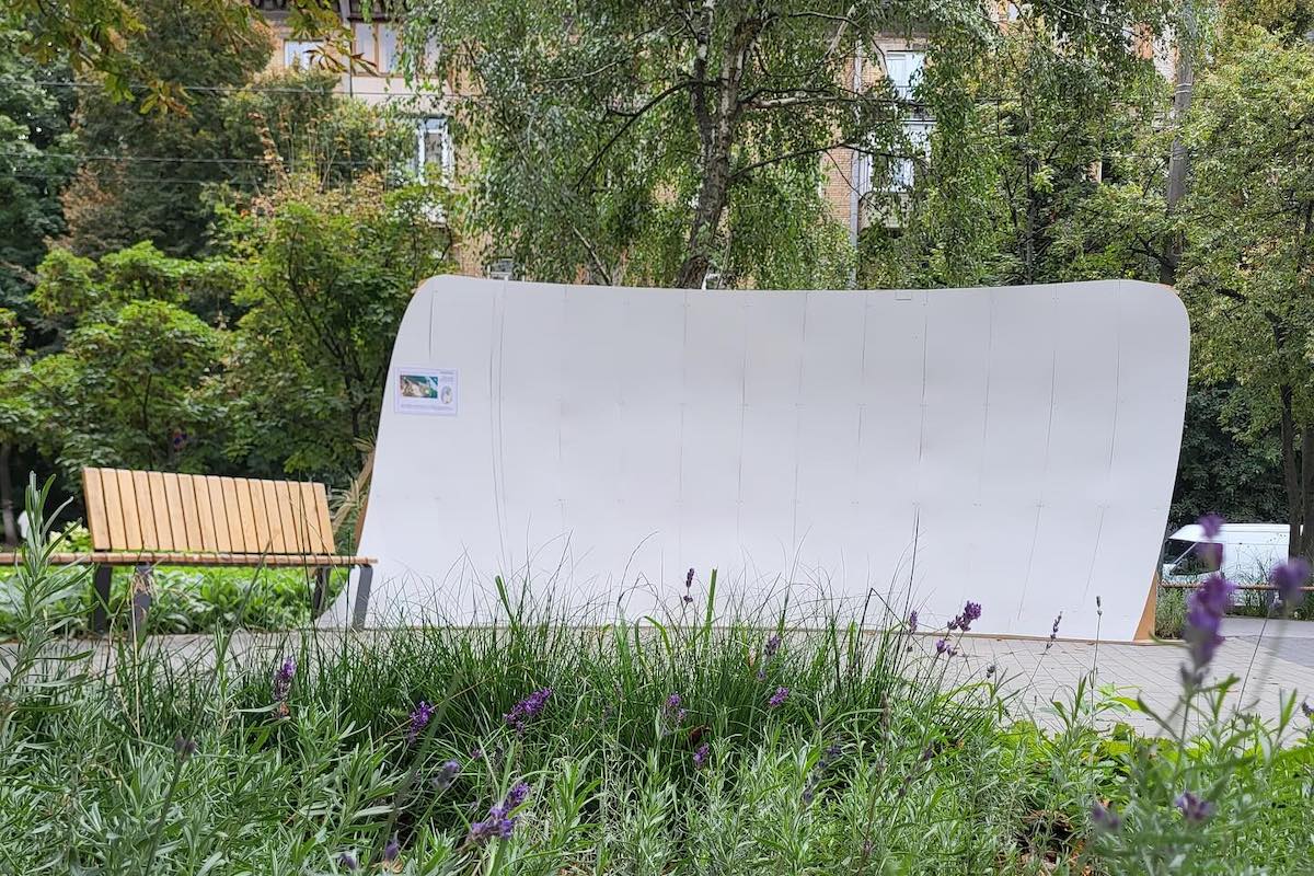 Сквер, який раніше мав назву на честь Зої Космодем’янської, перепланували та оновили рік тому за концепцією Aranchii Architects — студія розробила ідею «акустичного парку» безкоштовно на запит міста.