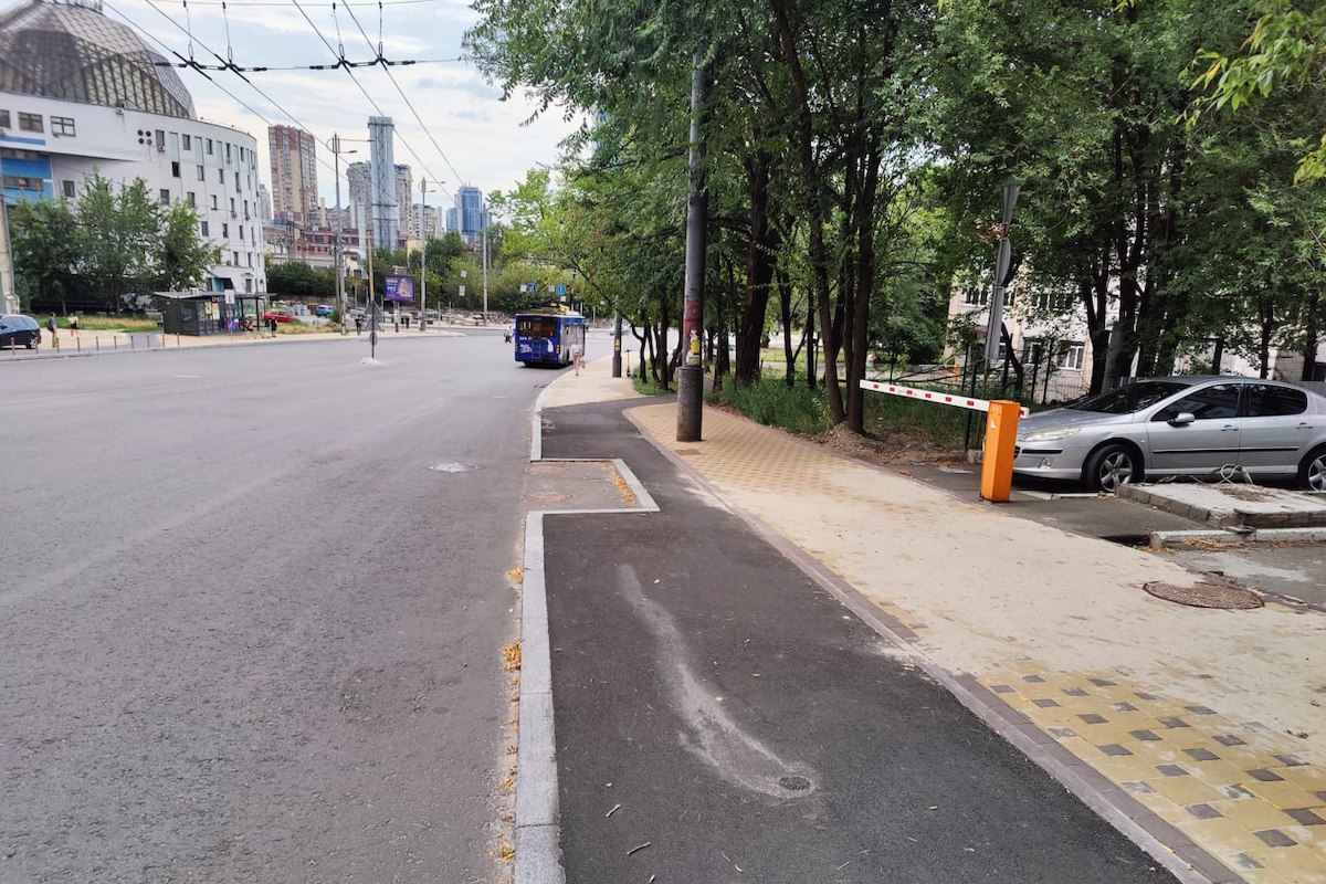 Крім того, велодоріжка різко обривається біля Солом’янської площі — цього так само не було у проєкті. Такі доріжки «в нікуди» вже будували два роки тому під час ремонту вулиці Льва Толстого (нова назва — Гетьмана Павла Скоропадського).