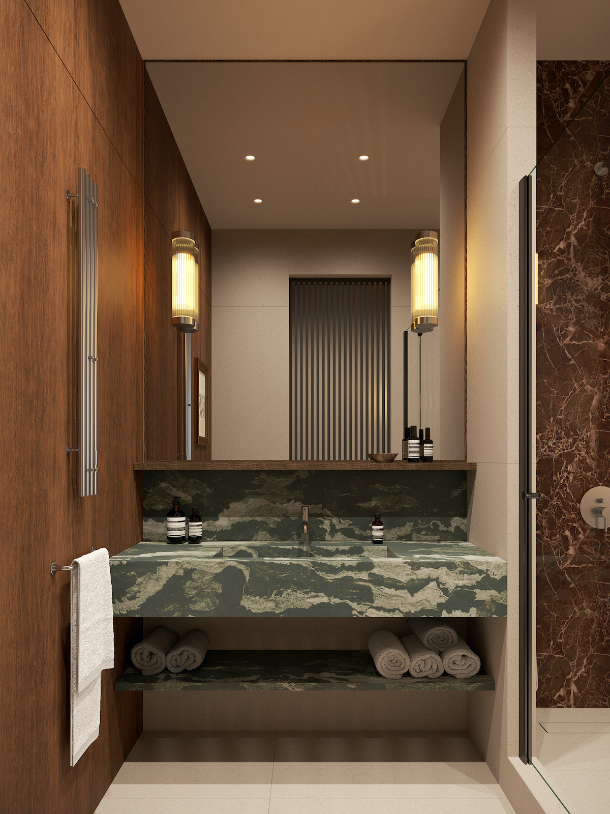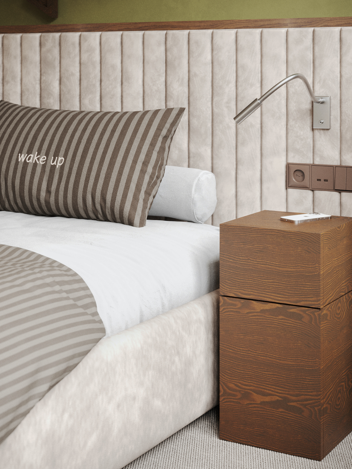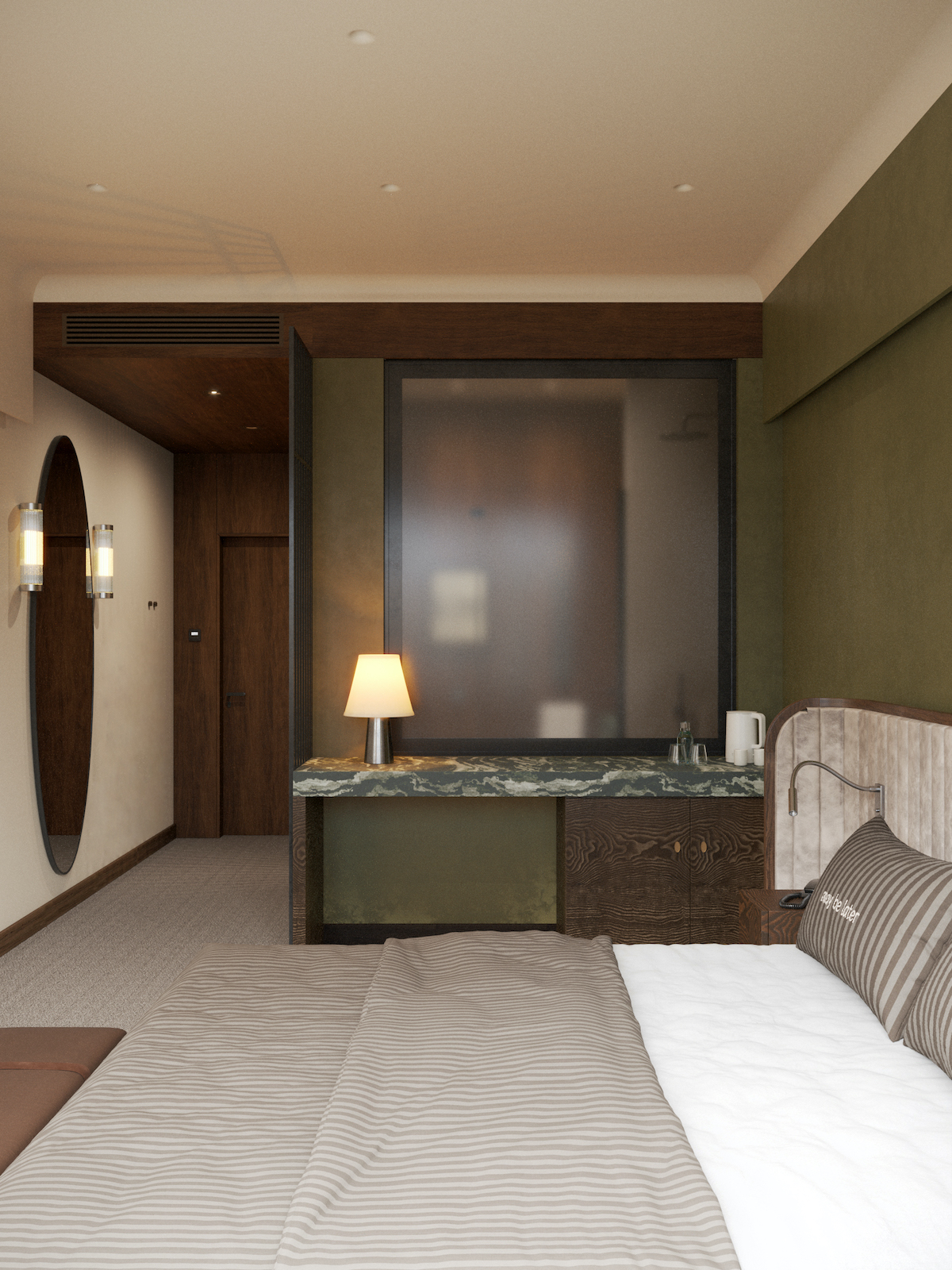Візуалізації готельних номерів розробила студія TEMO hotel design. Ідею описують як «поєднання лагідної розкоші з найсучаснішими технологіями».