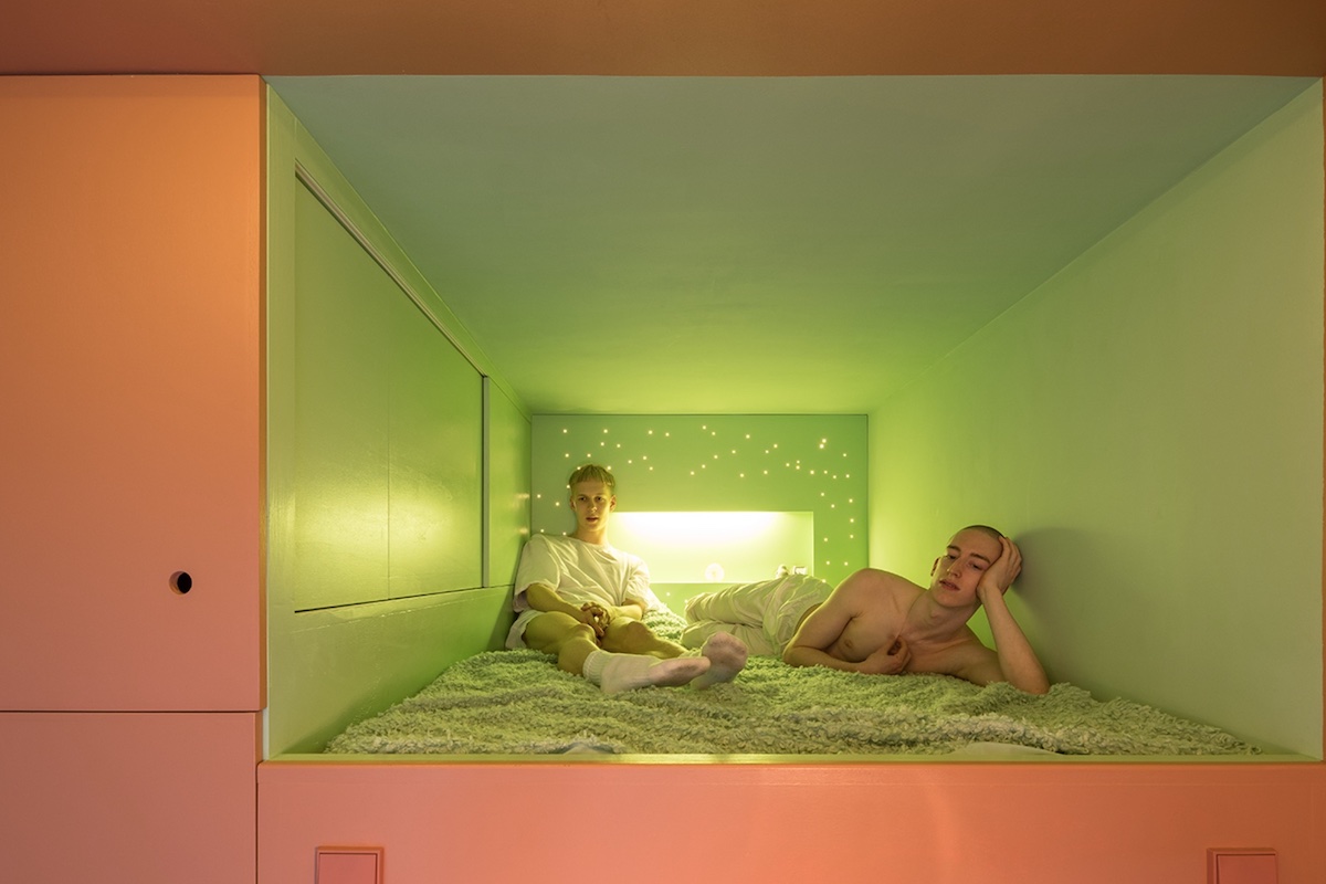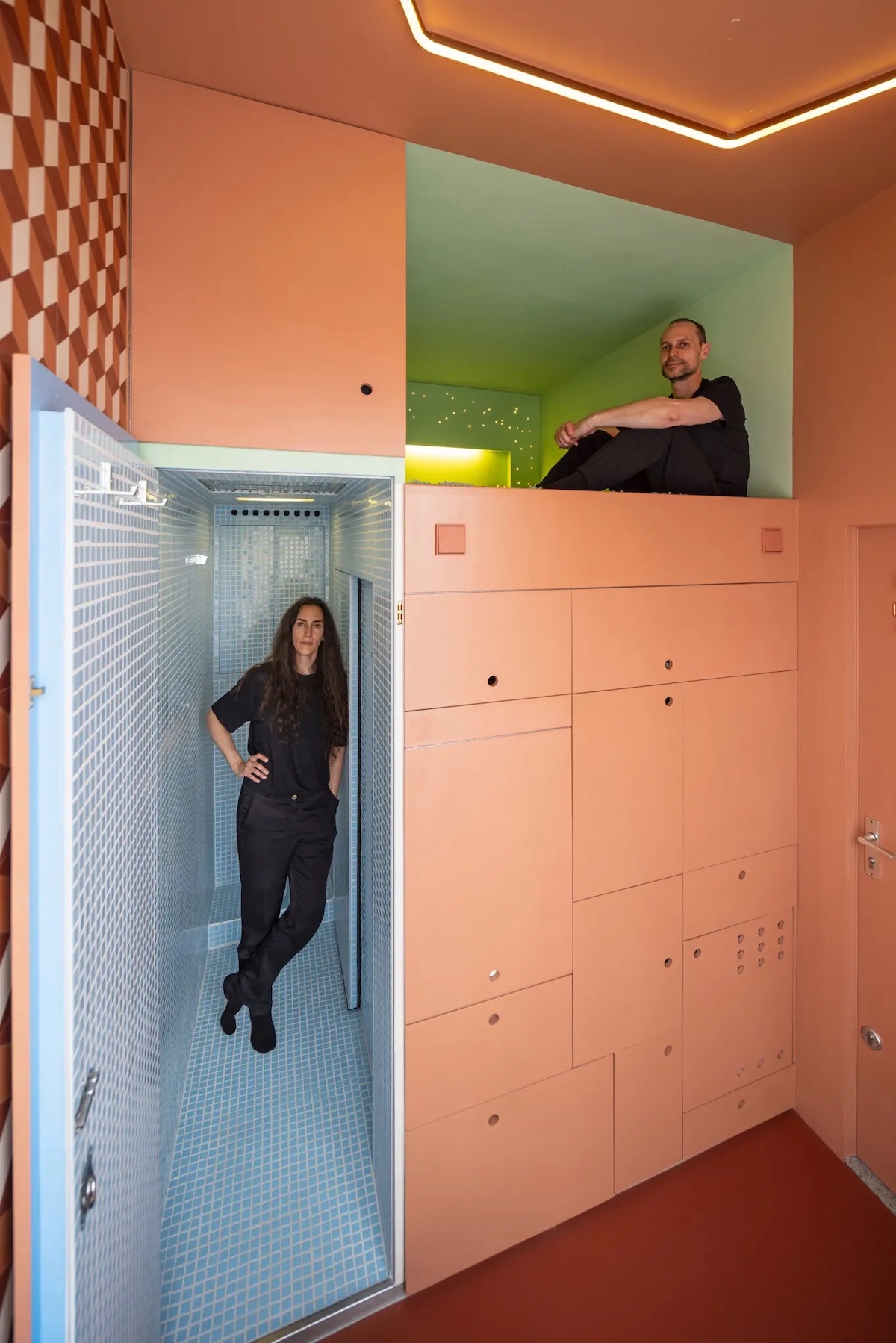 45-річна Беатріс Рамо, яка народилася в Іспанії, та зараз живе у Нідерландах, та її партнер, 51-річний німець Бернд Упмеєр, також архітектор, створили квартиру для себе (на презентаційних фото — моделі). Та насправді вони живуть у квартирі площею майже квадратних 60 метрів, кількома поверхами нижче, а «Кабанон» використовують для відпочинку або ж для гостей.