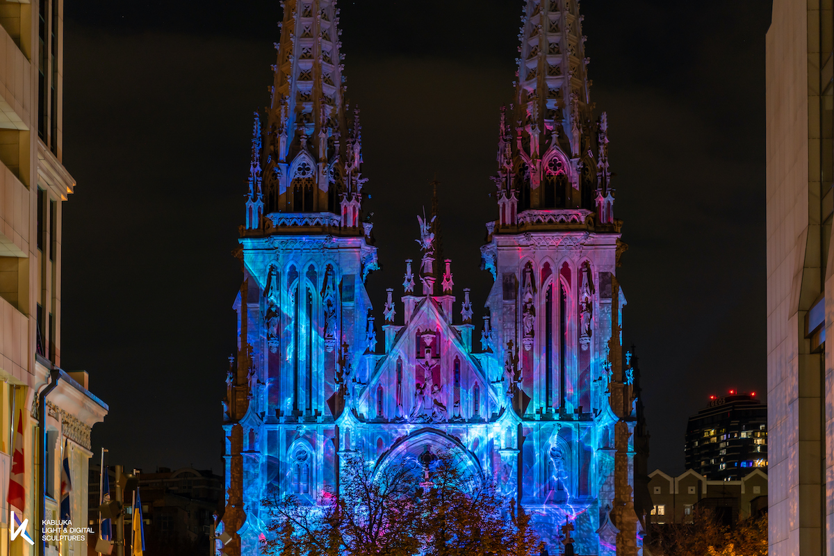 Митець Микола Каблука і команда Kabluka Light and Digital Sculpture х Expolight створили світлову інсталяцію «Душа» на Костелі Святого Миколая.