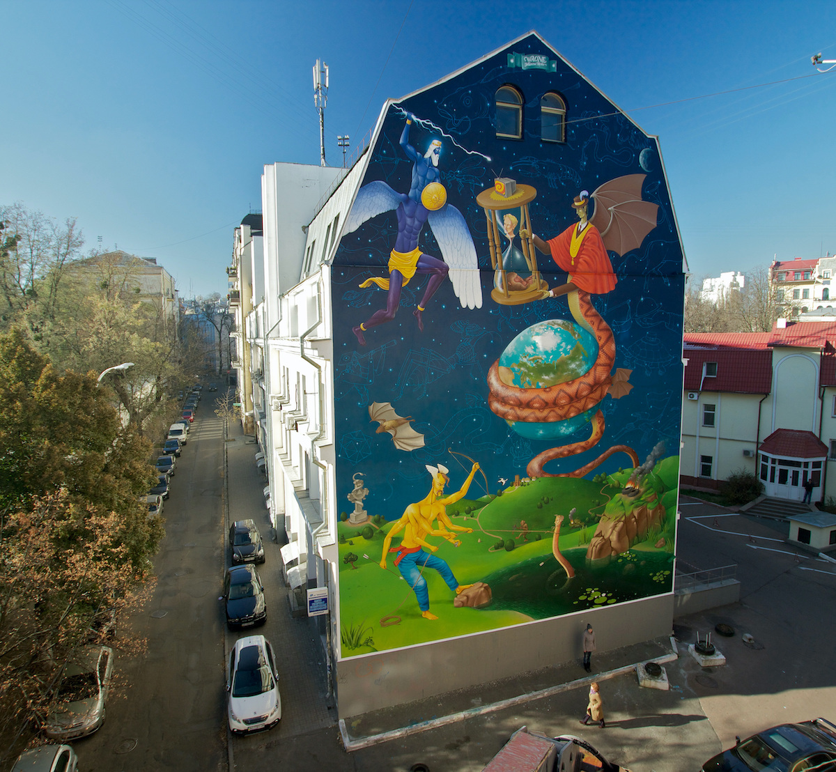 На іншому боці будинку є вже мурал так само від WaOne Interesni Kazki. Фото: waone.net
