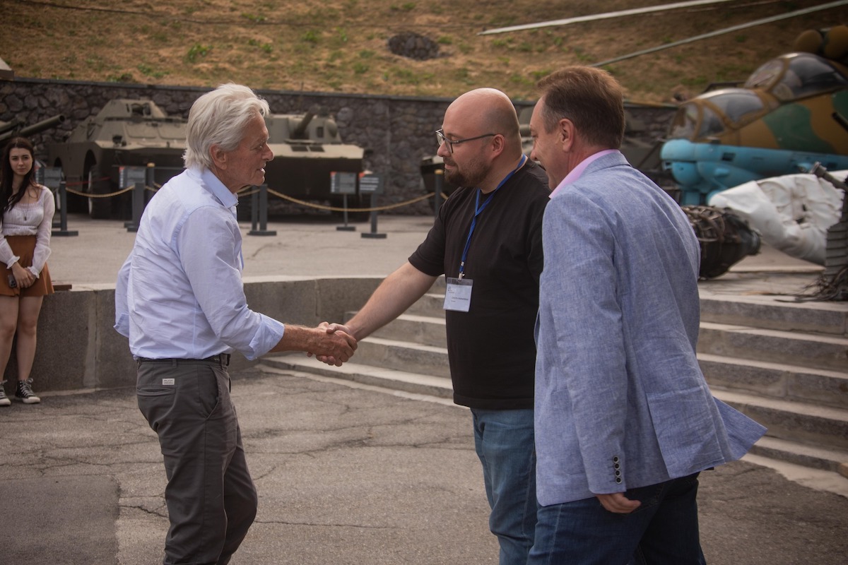 Майкл Дуглас, який також є послом доброї волі ООН, приїхав до Києва на Саміт перших леді та джентльменів. У Музеї йому показали виставку про нинішню російсько-українську війну «Україна — розп’яття».