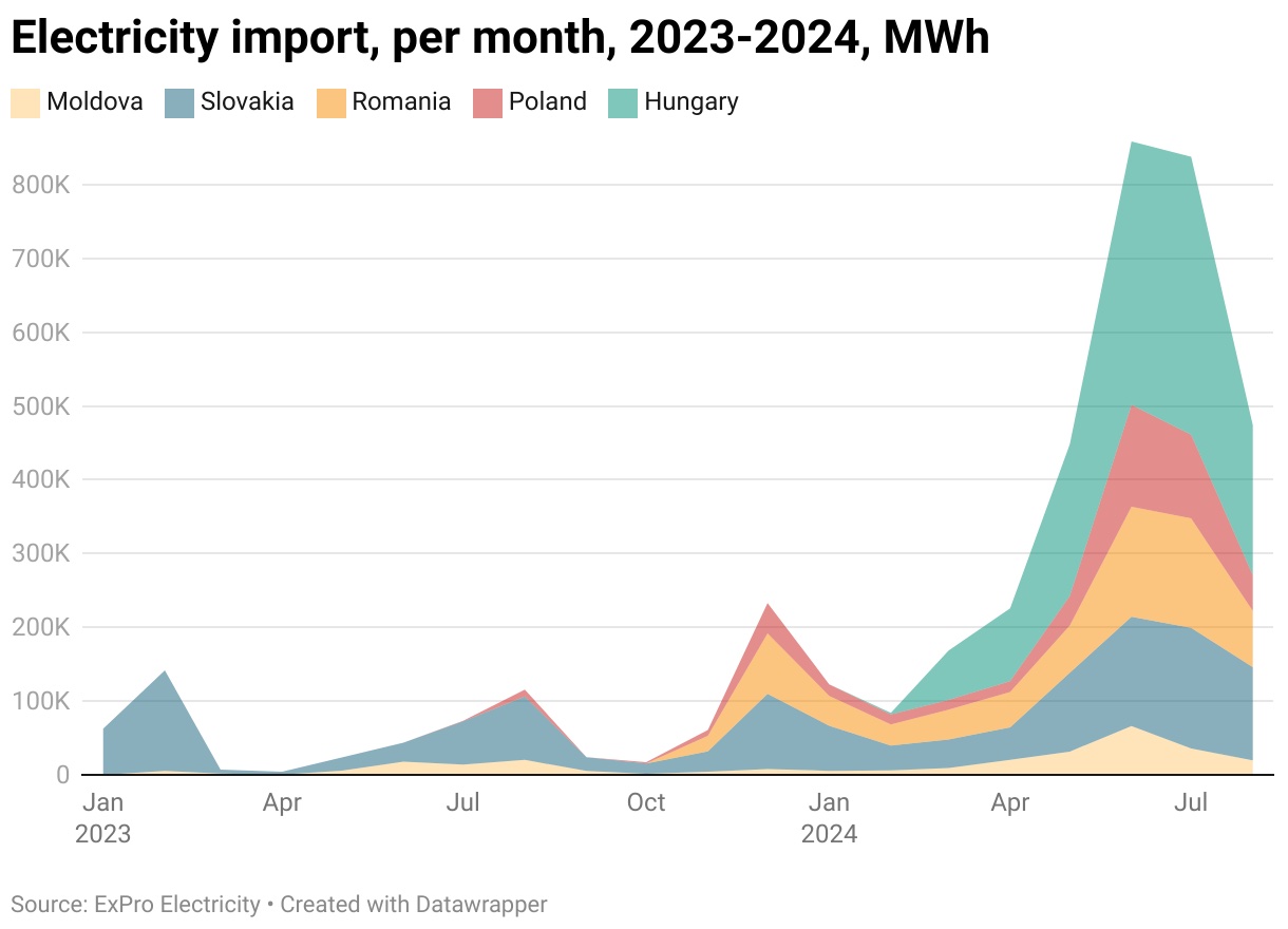 Водночас Україна справді імпортує все більше електроенергії — передусім із Угорщини, а також із Польщі, Румунії, Словаччини, Угорщини та Молдови.