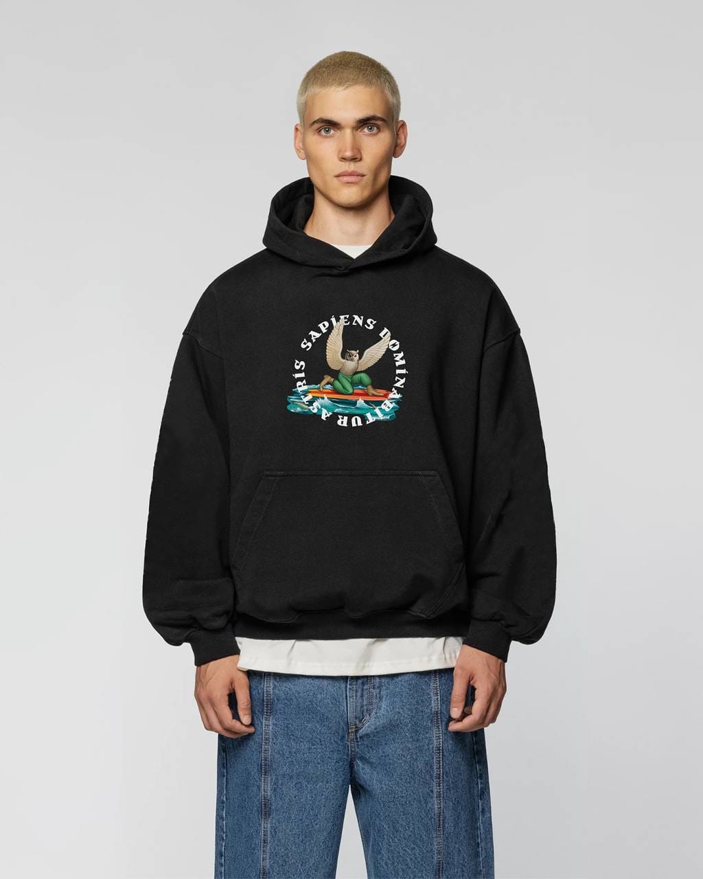 Назва роботи «Мудрий панує над зірками» збігається з гаслом розвідників Sapiens Dominabitur Astris. Сова є символом ГУР, рука символізує невидиму роботу української розвідки, сузірʼя Тельця символізує Україну. У сюжеті загалом відображено військові успіхи Сил оборони в Чорному морі.