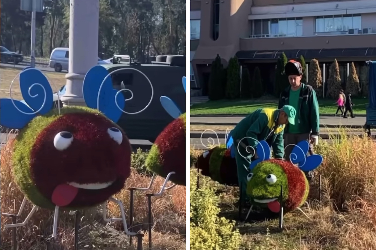Минулого тижня комунальники Дніпровського району Києва встановили на розв’язці біля парку Перемога інсталяцію з «шаленими бджліками» на ім’я Біба і Боба.