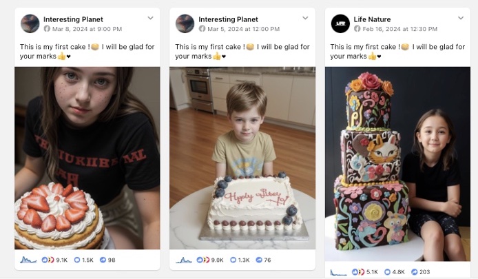 Автори стверджують, що самі постраждали під час свого дослідження: після довгих пошуків ШІ-контенту їхні власні фейсбук-стрічки почали завалювати їх синтетичними дітьми, будиночками і тортами.