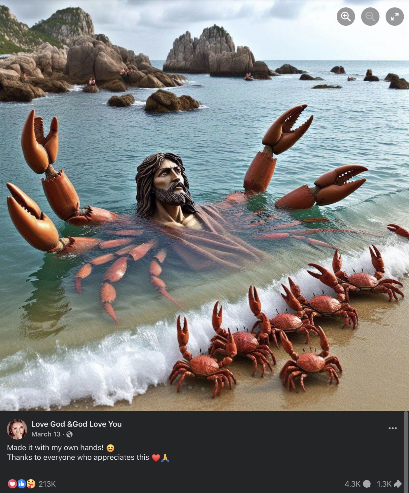 Це згенероване ШІ зображення було серед топ-20 найпопулярніших фейсбук-постів, отримавши 40 мільйонів переглядів і два мільйони лайків: