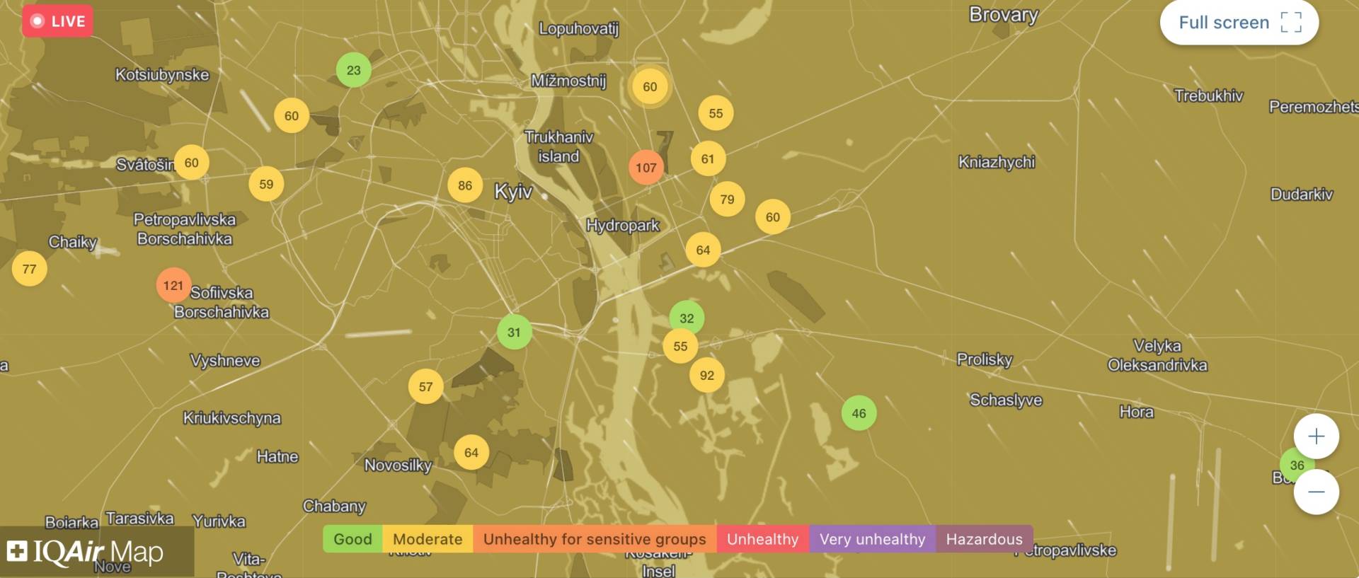 За прогнозом Укргідрометцентру, ситуація з повітрям покращиться лише на вихідних, коли прийдуть дощі і свіже повітря з заходу.