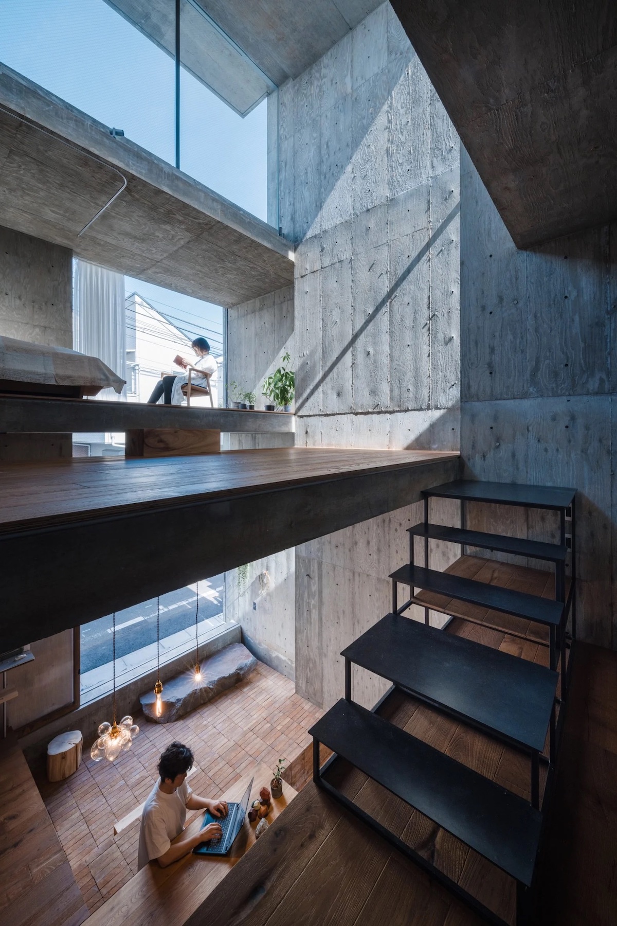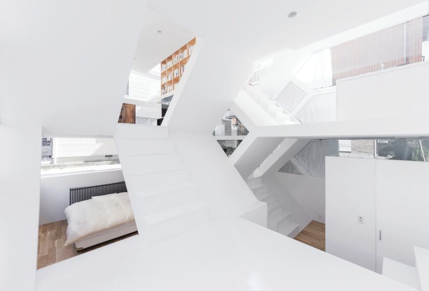 Ще одні вбивчі сходи, звичайно з Японії. Бюро IGArchitects вирішило спроєктувати будинок у Токіо як одну велику кімнату з антресолями, сполученими сходами та драбинами.