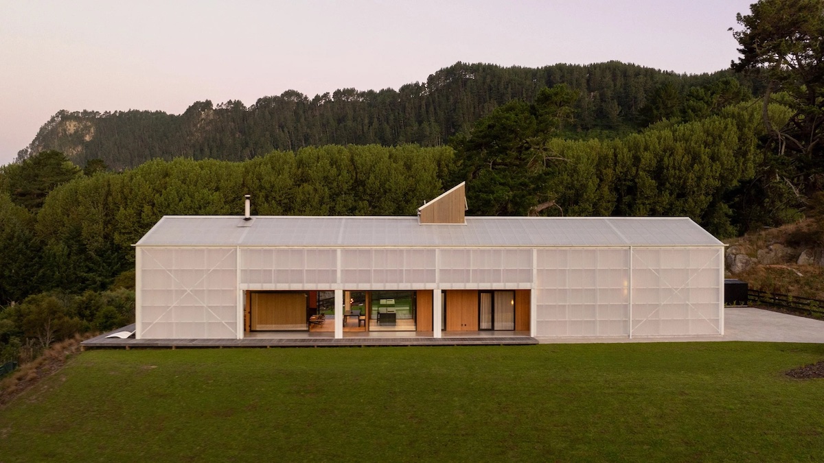 Новозеландська студія DCA Architects of Transformation загорнула заміську дачу на березі озера Факемару в напівпрозору полікарбонатну обгортку. Цей будинок призначено для родини директора студії.