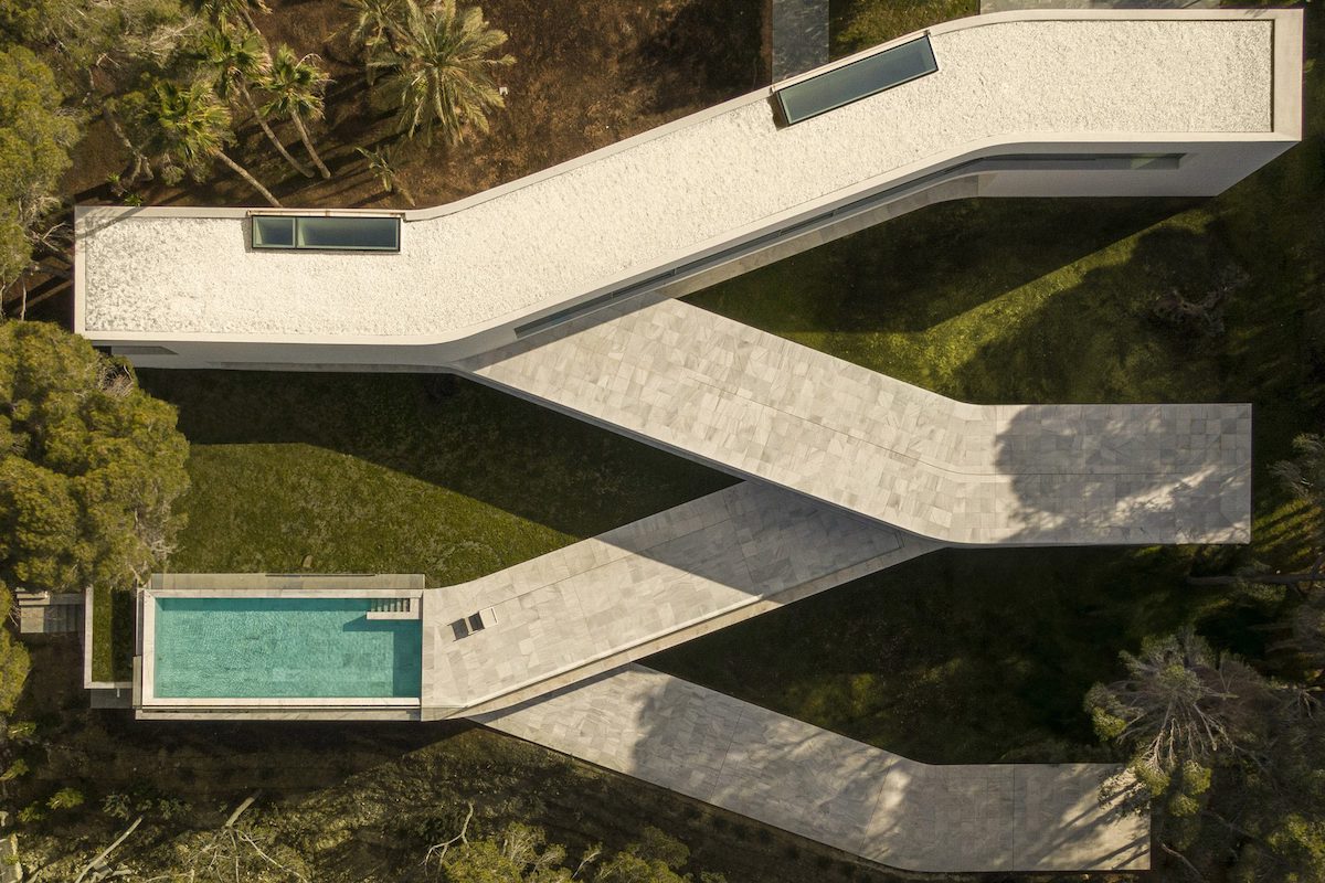 Іспанська студія Fran Silvestre Arquitectos спроєктувала мінімалістичний будинок в Аліканте. Білий зигзаг виглядає ефектно, особливо згори, однак, певно, дуже прикро дійти до басейну й виявити, що забув купальний костюм у гардеробі, що на іншому боці.