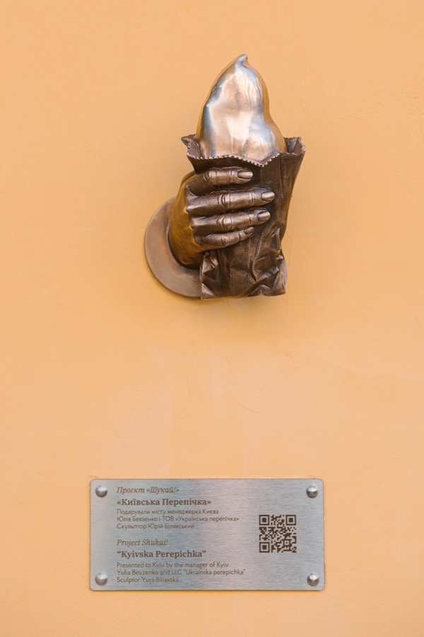 Легендарна київська перепічка стала ювілейною 45-ю мініскульптурою культурно-історичного проєкту «Шукай!» Юлії Бевзенко, який розповідає історії Києва через бронзові скульптурки.